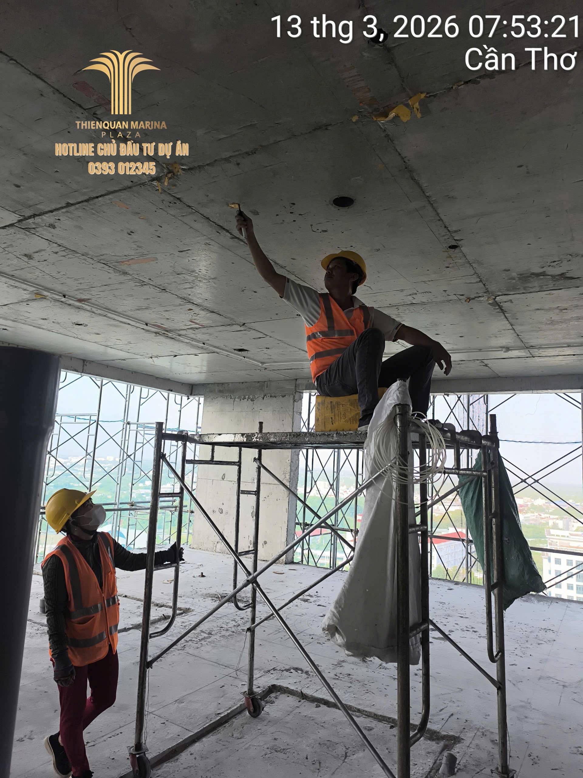 Trong tháng 03/2026, công trường dự án Thiên Quân – Marina Plaza Cần Thơ tiếp tục duy trì nhịp độ thi công khẩn trương, tập trung hoàn thiện các hạng mục quan trọng sau khi công trình đã đạt cột mốc cất nóc tầng 23. Các tổ đội thi công, kỹ sư và công nhân đang phối hợp đồng bộ nhằm đảm bảo tiến độ, chất lượng cũng như an toàn lao động tại công trường.