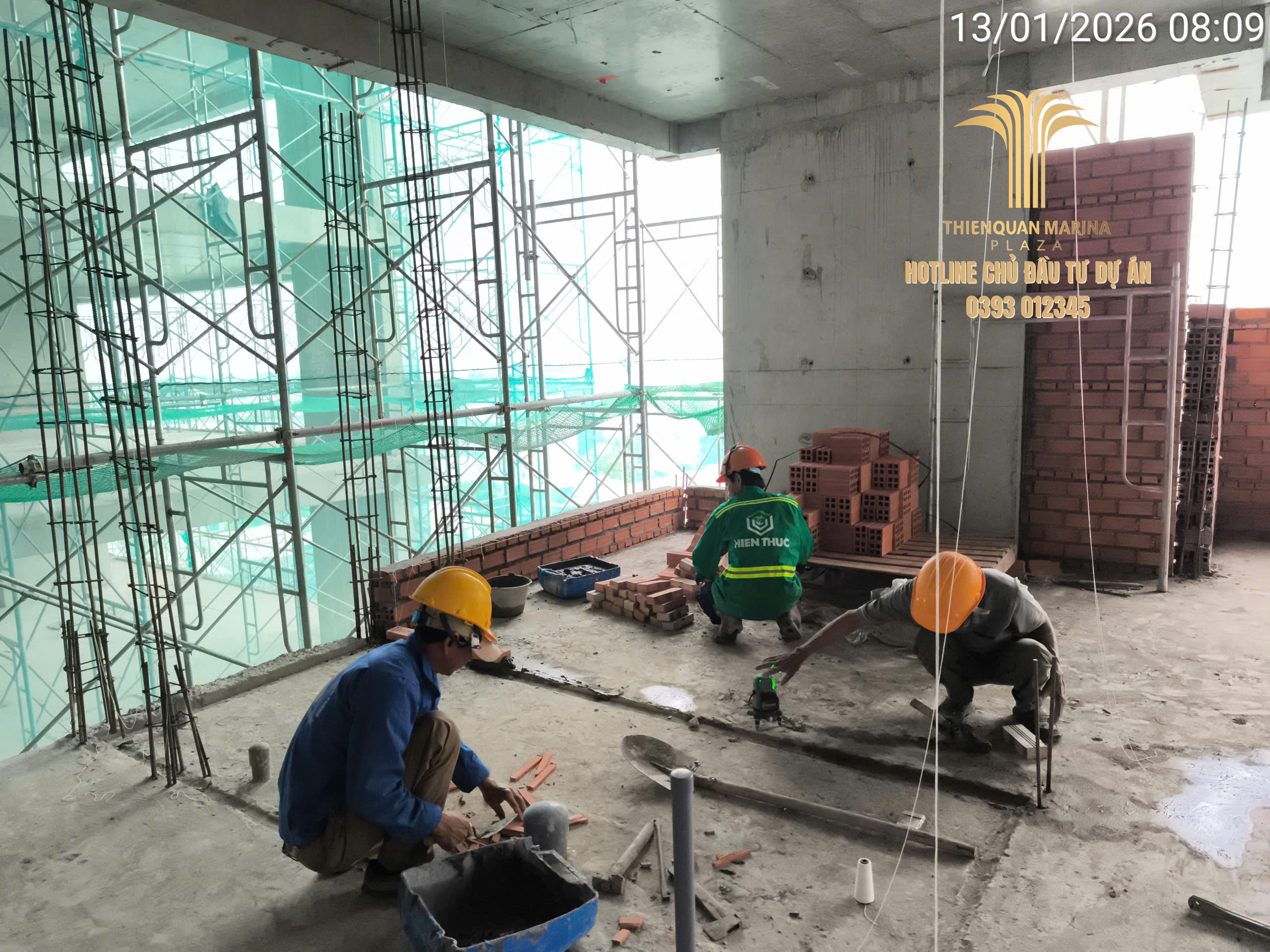 Trong không khí làm việc khẩn trương của những ngày giữa tháng 1, công trường Thiên Quân Marina Plaza tiếp tục ghi nhận sự bứt phá mạnh mẽ ở nhiều hạng mục quan trọng. Với lực lượng nhân sự hùng hậu và sự hỗ trợ từ thời tiết thuận lợi, dự án đang tiến gần hơn đến các cột mốc hoàn thiện kế hoạch đầu năm.