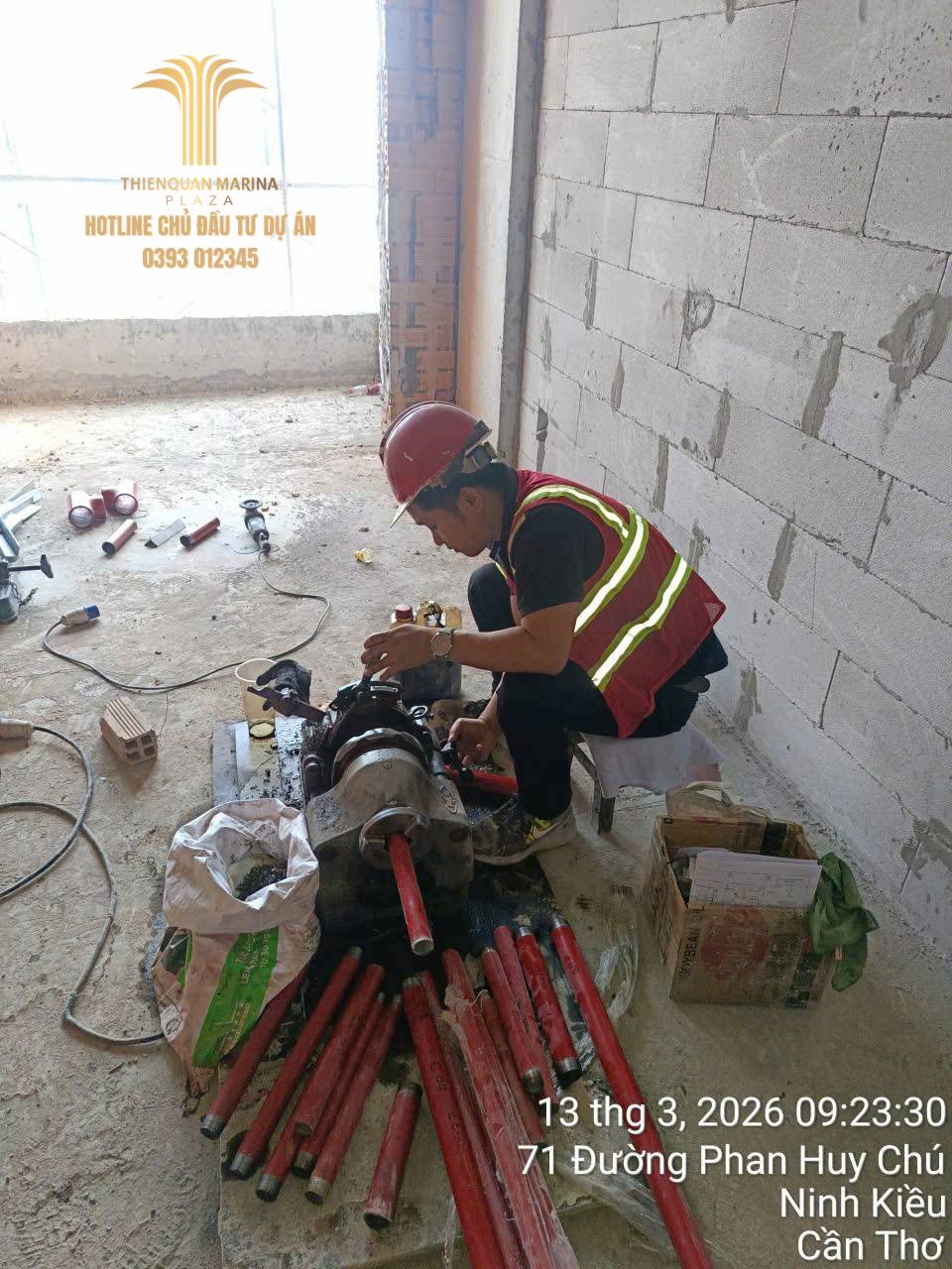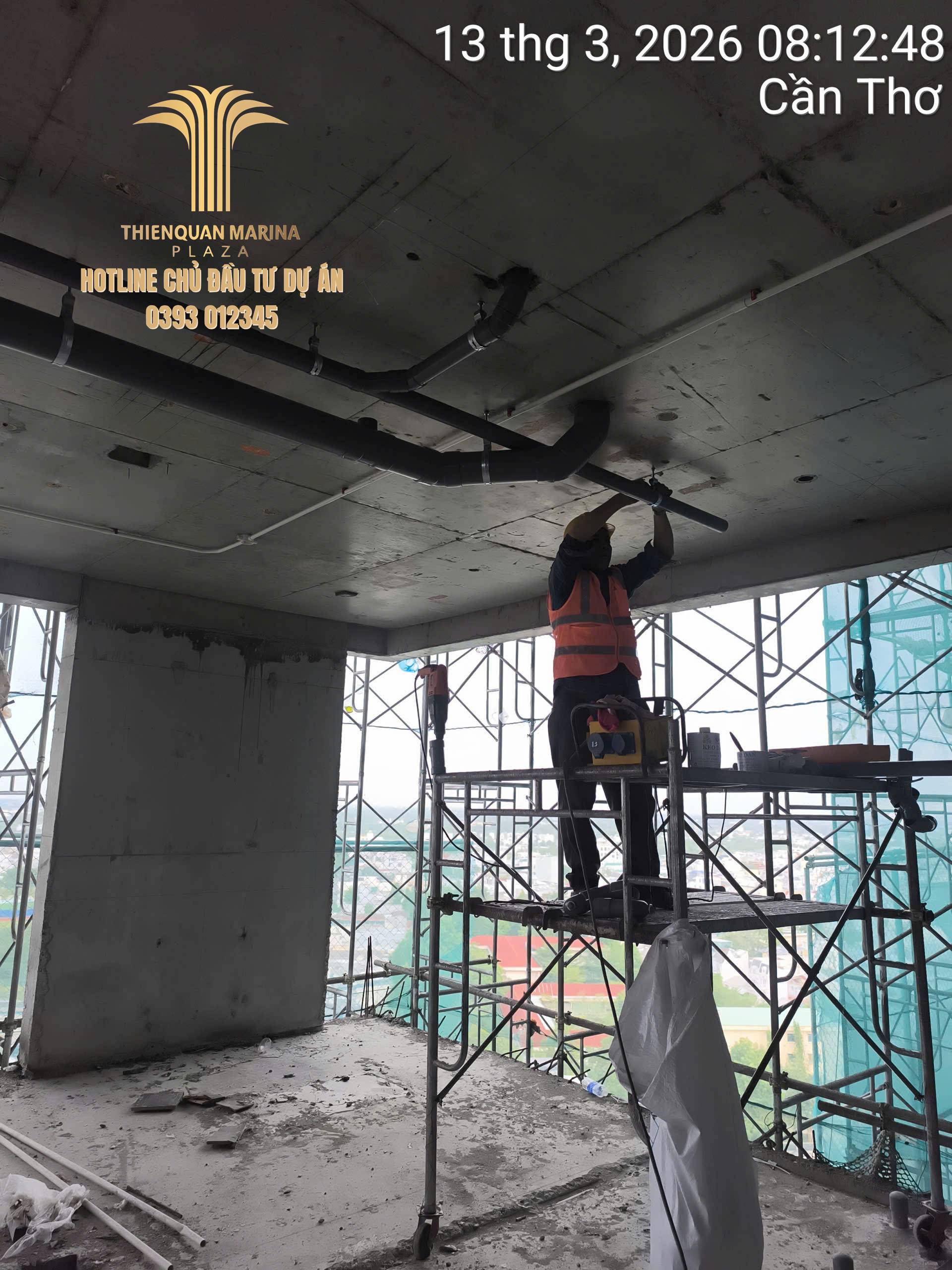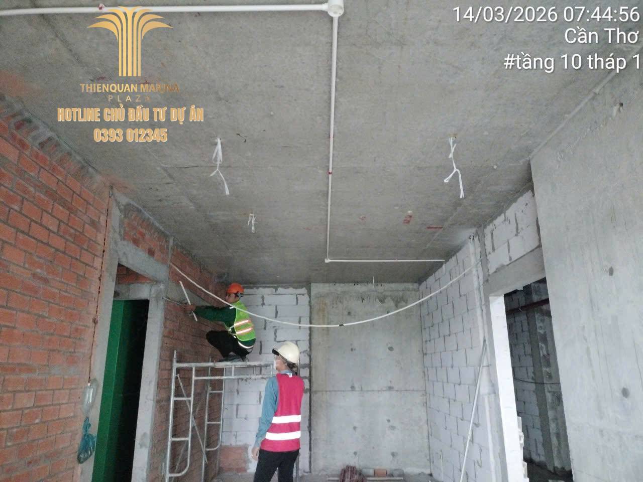 Trong tháng 03/2026, công trường dự án Thiên Quân – Marina Plaza Cần Thơ tiếp tục duy trì nhịp độ thi công khẩn trương, tập trung hoàn thiện các hạng mục quan trọng sau khi công trình đã đạt cột mốc cất nóc tầng 23. Các tổ đội thi công, kỹ sư và công nhân đang phối hợp đồng bộ nhằm đảm bảo tiến độ, chất lượng cũng như an toàn lao động tại công trường.