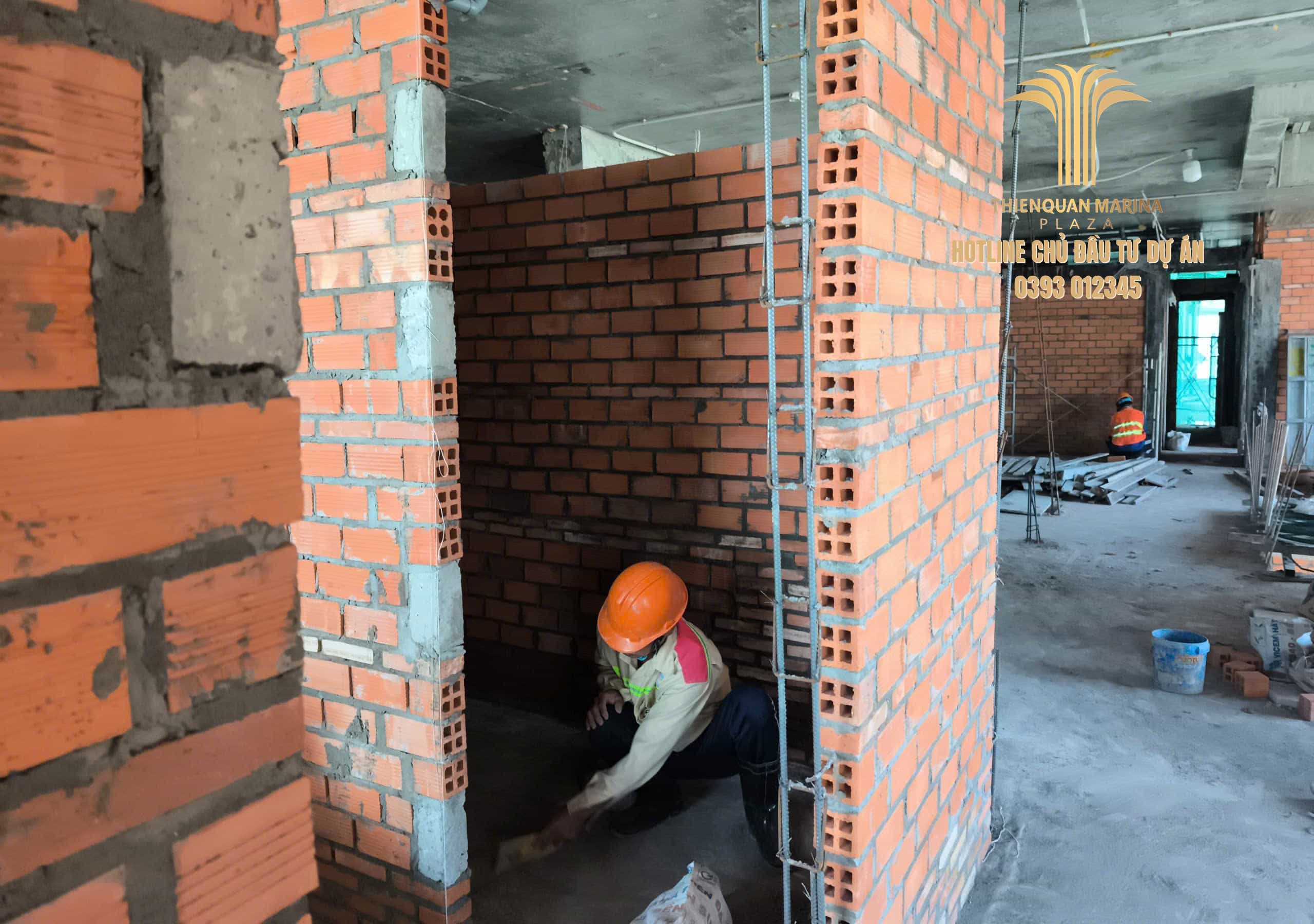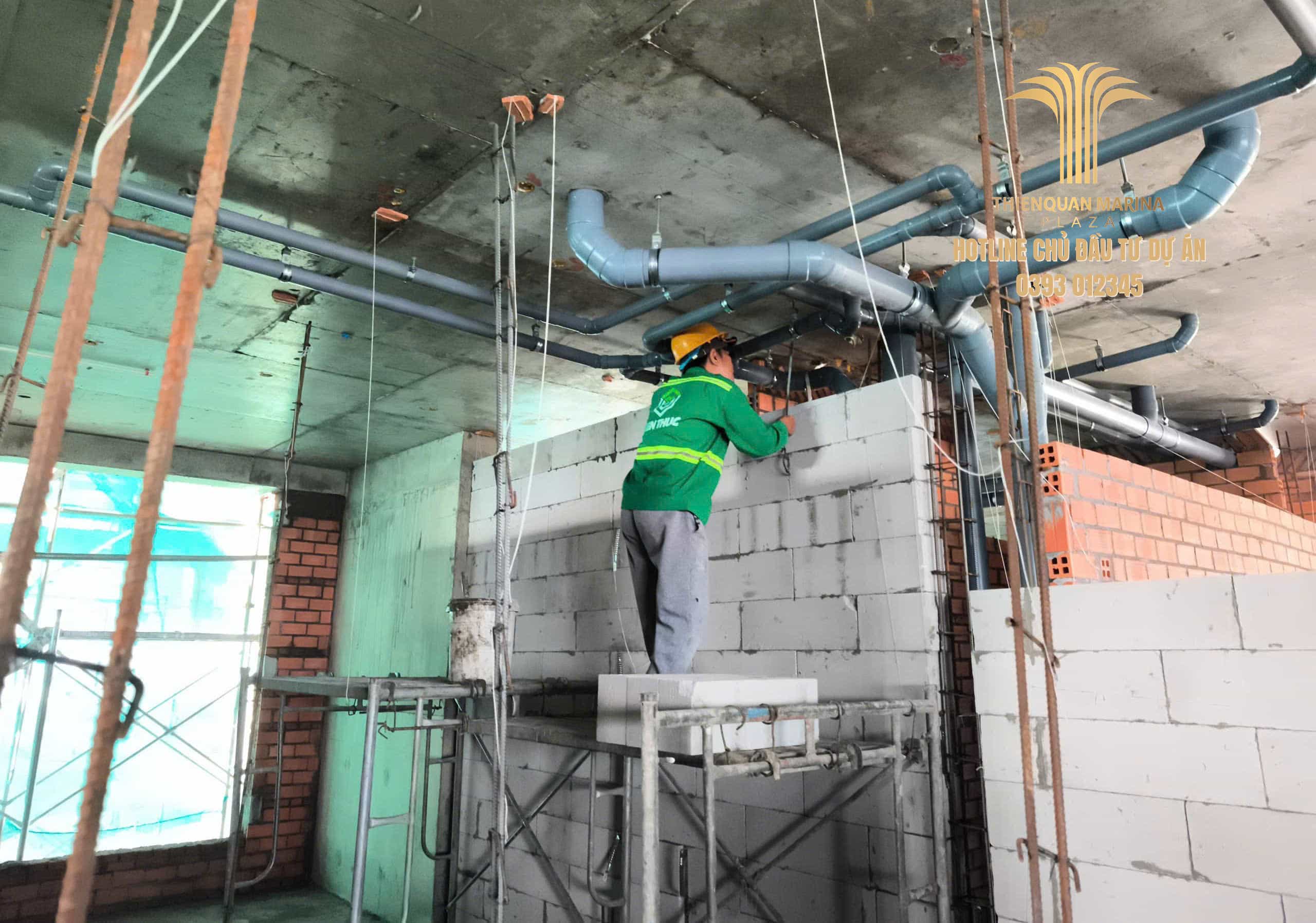 Hạng mục xây tường, lanh tô diện rộng bứt phá mạnh mẽ từ tầng 12A lên đến diện thi công tầng 15 – tầng 19.