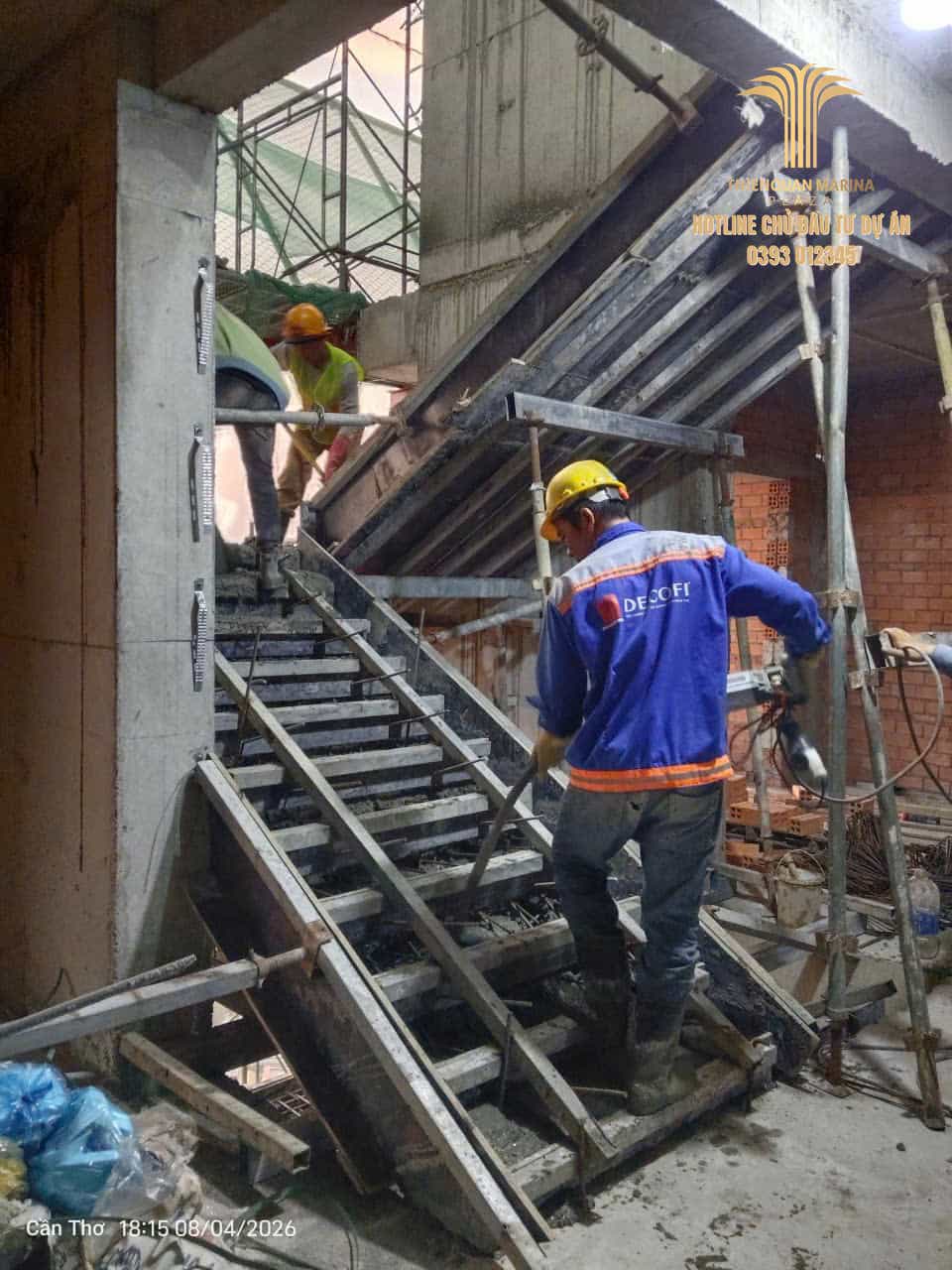Hoàn thành đổ bê tông cầu thang các tầng 12B – 15 tại Tháp 2 vào ngày 08/04/2026.