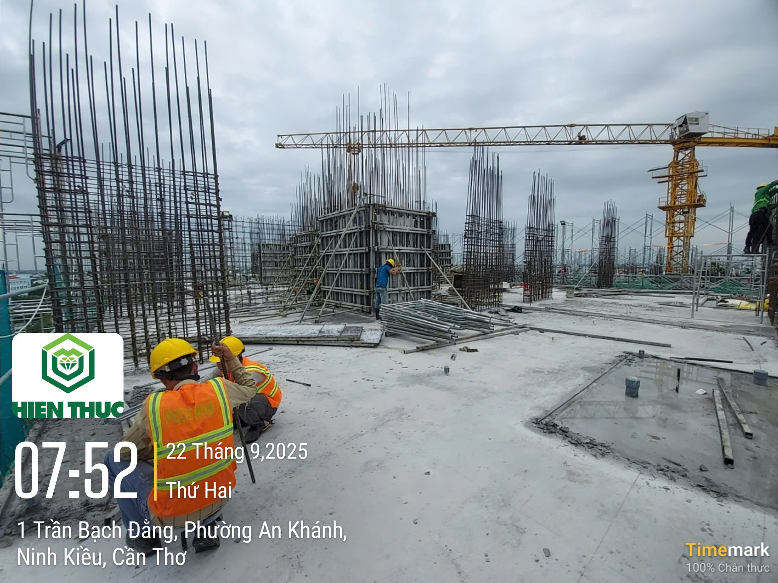 Dự án Chung cư Thiên Quân Marina Plaza Cần Thơ tiếp tục tiến triển mạnh mẽ, tập trung hoàn thiện các hạng mục quan trọng tại tầng 9 và triển khai công tác chuẩn bị cho tầng 10. Báo cáo ngày 28 tháng 9 năm 2025 cho thấy công trình đang tiến triển đúng kế hoạch, đảm bảo chất lượng và an toàn trên công trường.