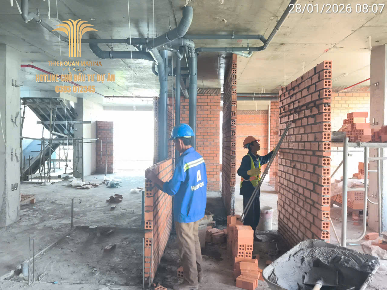 Trong những ngày giáp Tết, không khí tại công trường Thiên Quân Marina Plaza vẫn vô cùng hối hả. Với sự tập trung cao độ, dự án không chỉ duy trì nhịp độ ở các tầng cao mà còn mở rộng phạm vi lắp đặt hệ thống kỹ thuật xuống các tầng dưới, khẳng định cam kết về tiến độ với khách hàng.