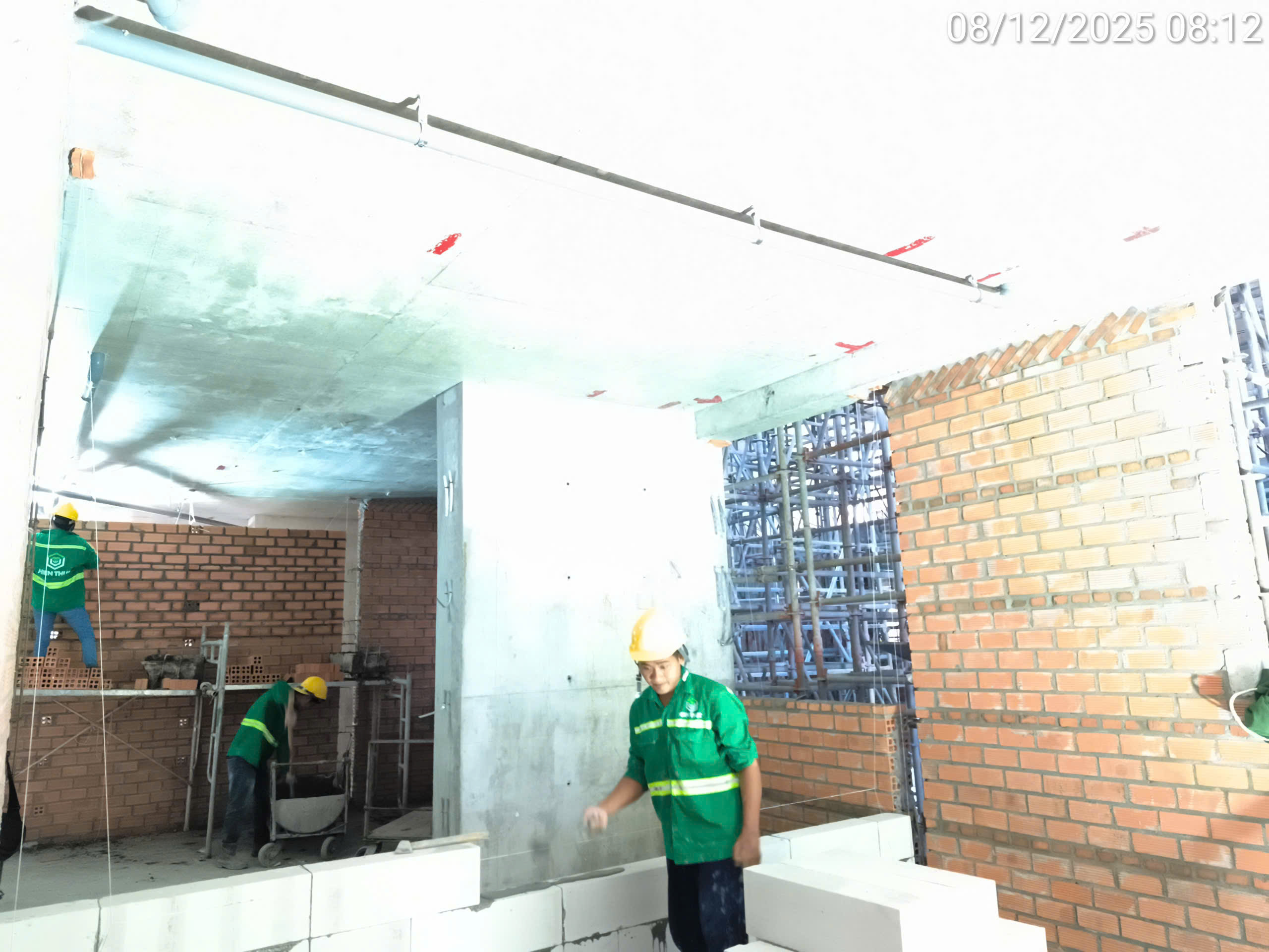 Xây tường, lanh tô, bô trụ tầng 2+3.