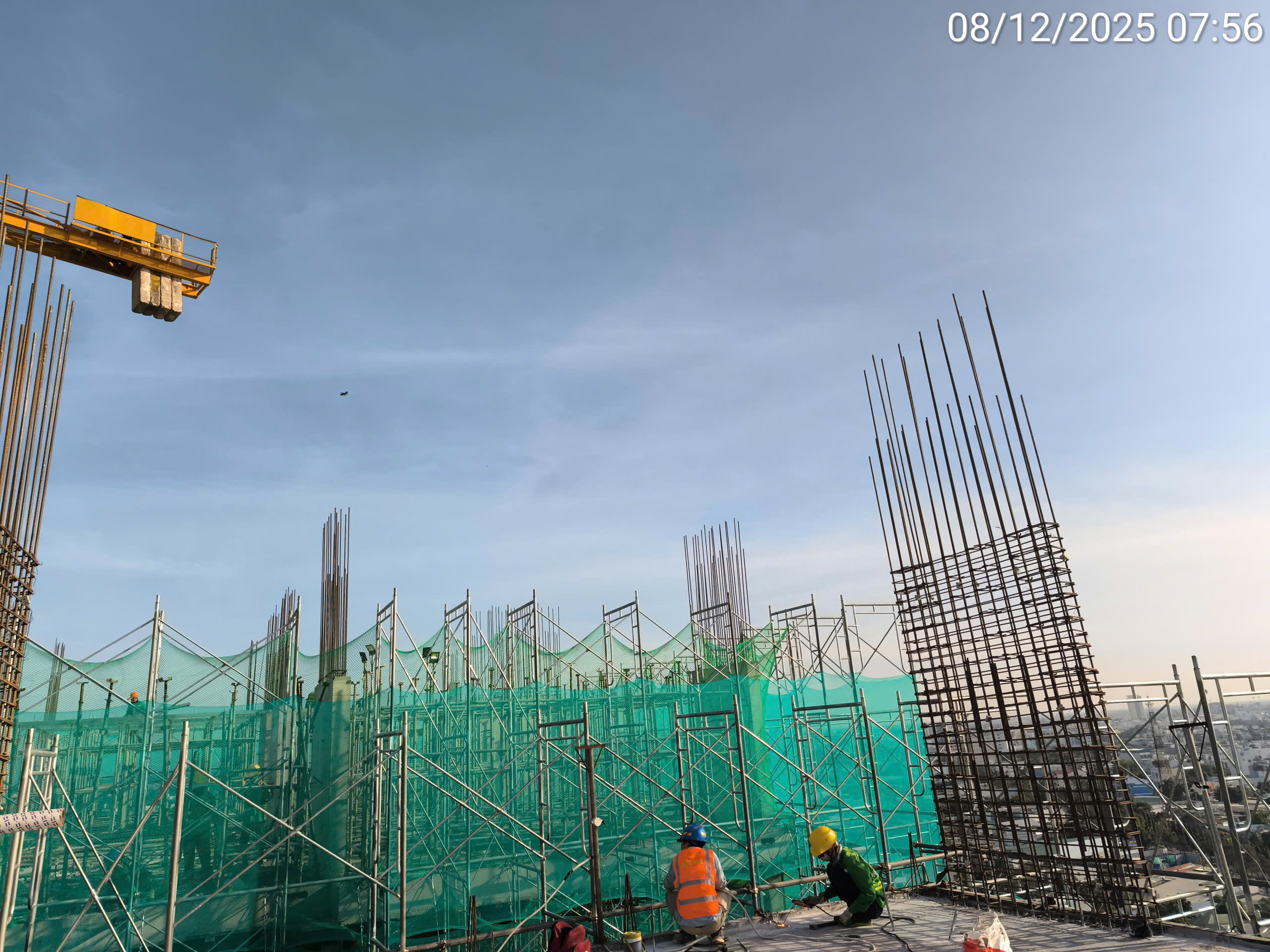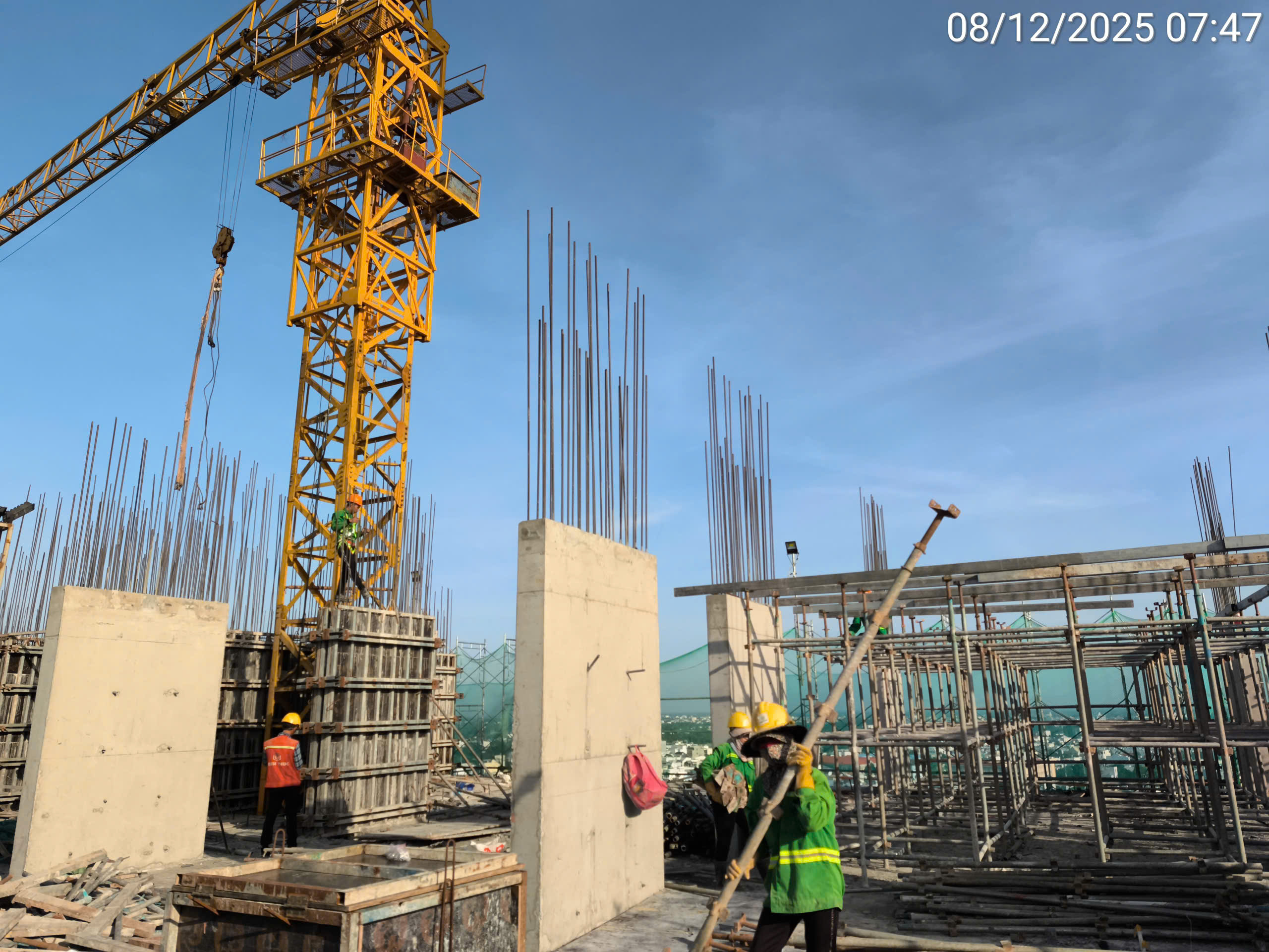 Trong ngày 12/12/2025, công trường duy trì lực lượng 162 nhân công và làm việc dưới điều kiện thời tiết nắng ráo cả ngày. Công tác chính tập trung vào lắp dựng và gia công cốt thép cốt vách, dầm sàn cho Tầng 17, đồng thời tiến hành Đổ bê tông dầm sàn Tầng 17 Tháp 2 (620 Châu Thới). Kế hoạch tăng ca đã diễn ra nhằm chuẩn bị cho việc đổ bê tông dầm sàn Tầng 17 Tháp 2. Kế hoạch công việc ngày mai (13.12.2025) sẽ tập trung vào lắp dựng ván khuôn cốt vách và dầm sàn Tầng 17, cùng với việc Lắp đặt hệ thống thoát nước các tầng từ 2 – 7.