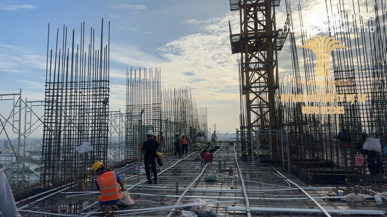 Trọng tâm: Thực hiện đổ bê tông dầm sàn tầng 20 tháp 1 (Đơn vị cung cấp: Hamaco).