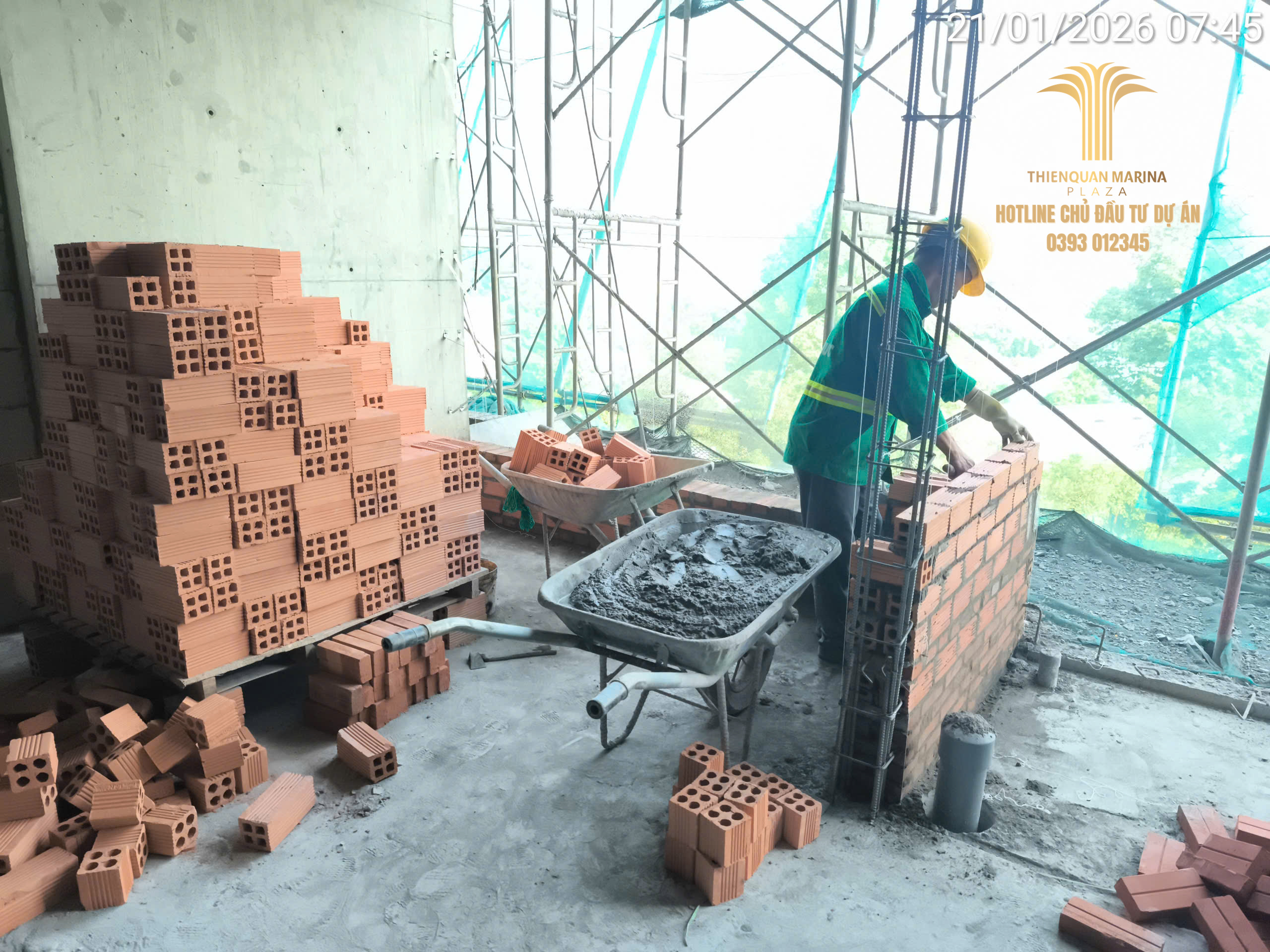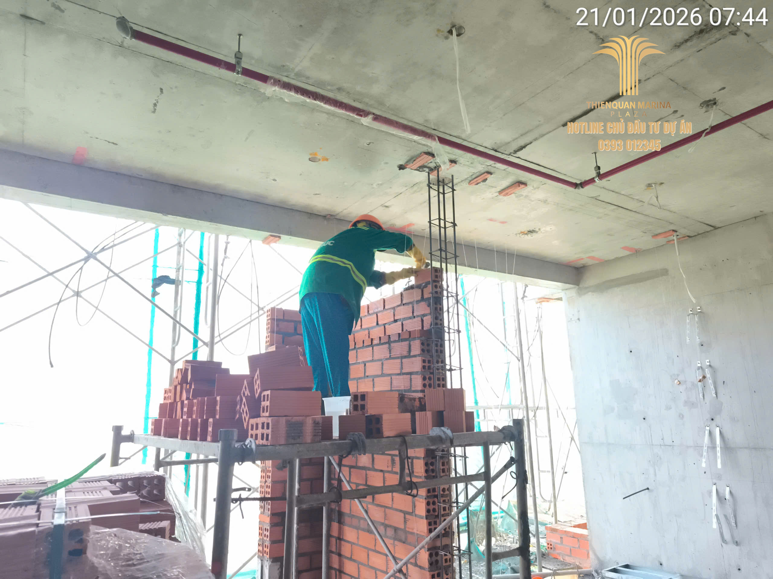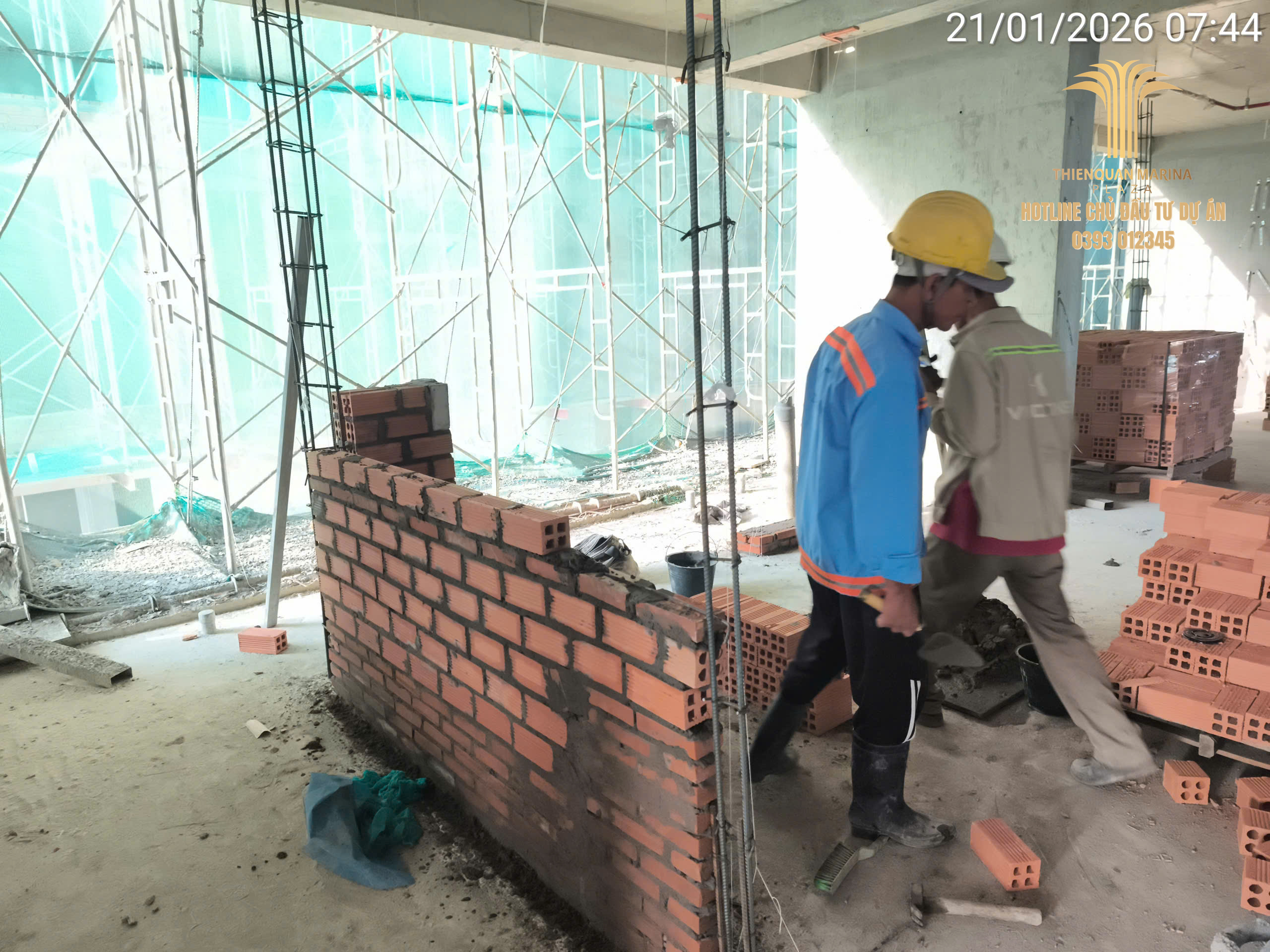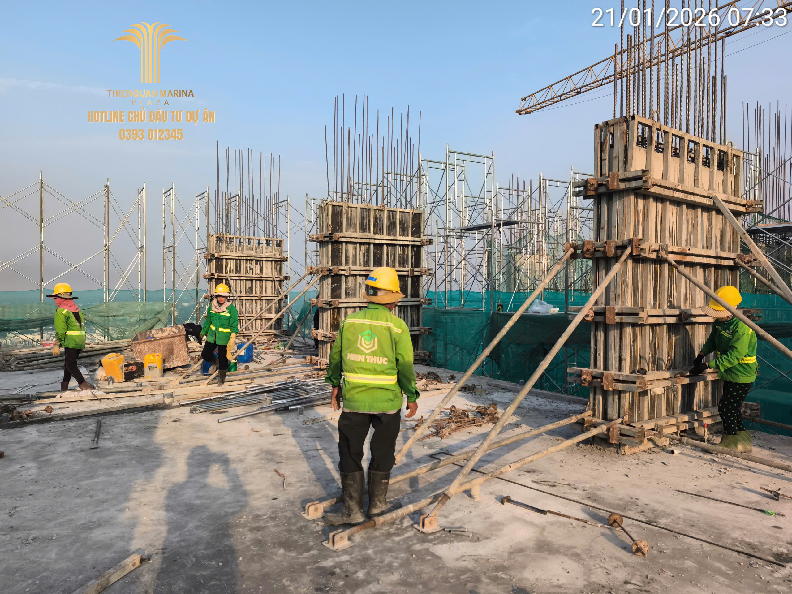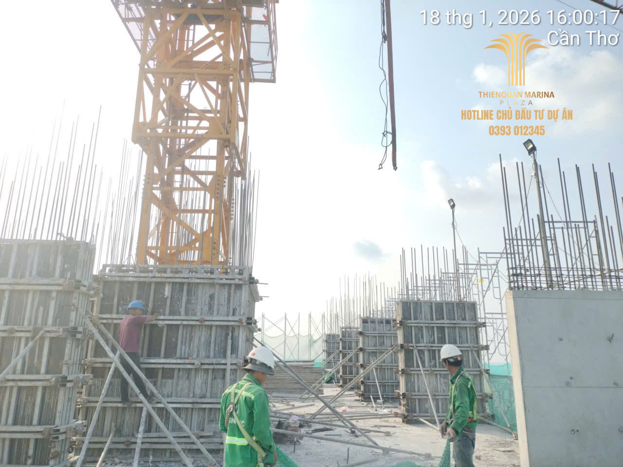 Dù đang trong giai đoạn cận Tết Nguyên Đán, công trường Thiên Quân Marina Plaza vẫn duy trì tinh thần làm việc hăng say với quân số tối đa. Trong ngày 21.01.2026, dự án đã ghi nhận những bước tiến quan trọng tại cả tháp cao tầng và khu vực khối đế thương mại.