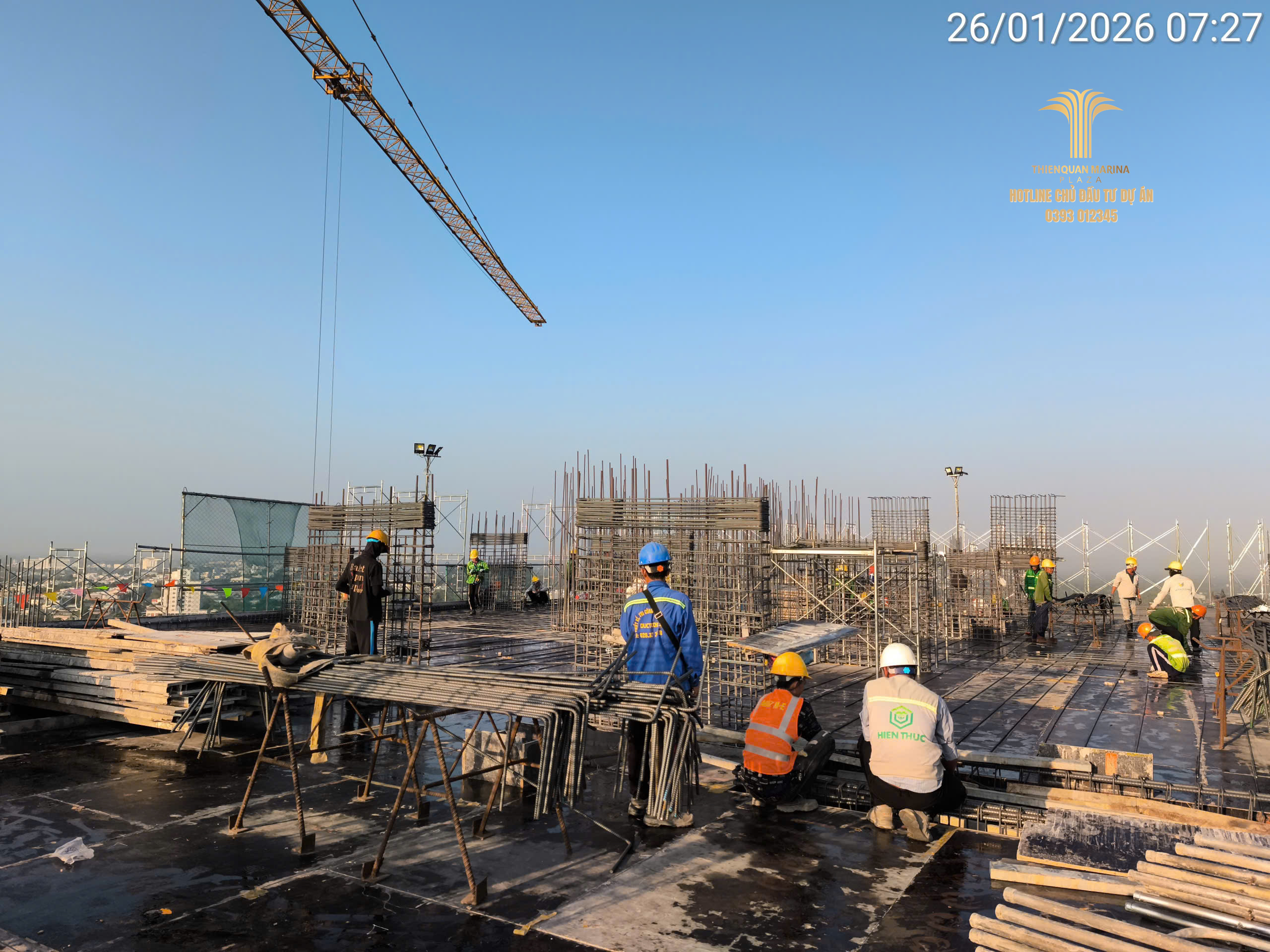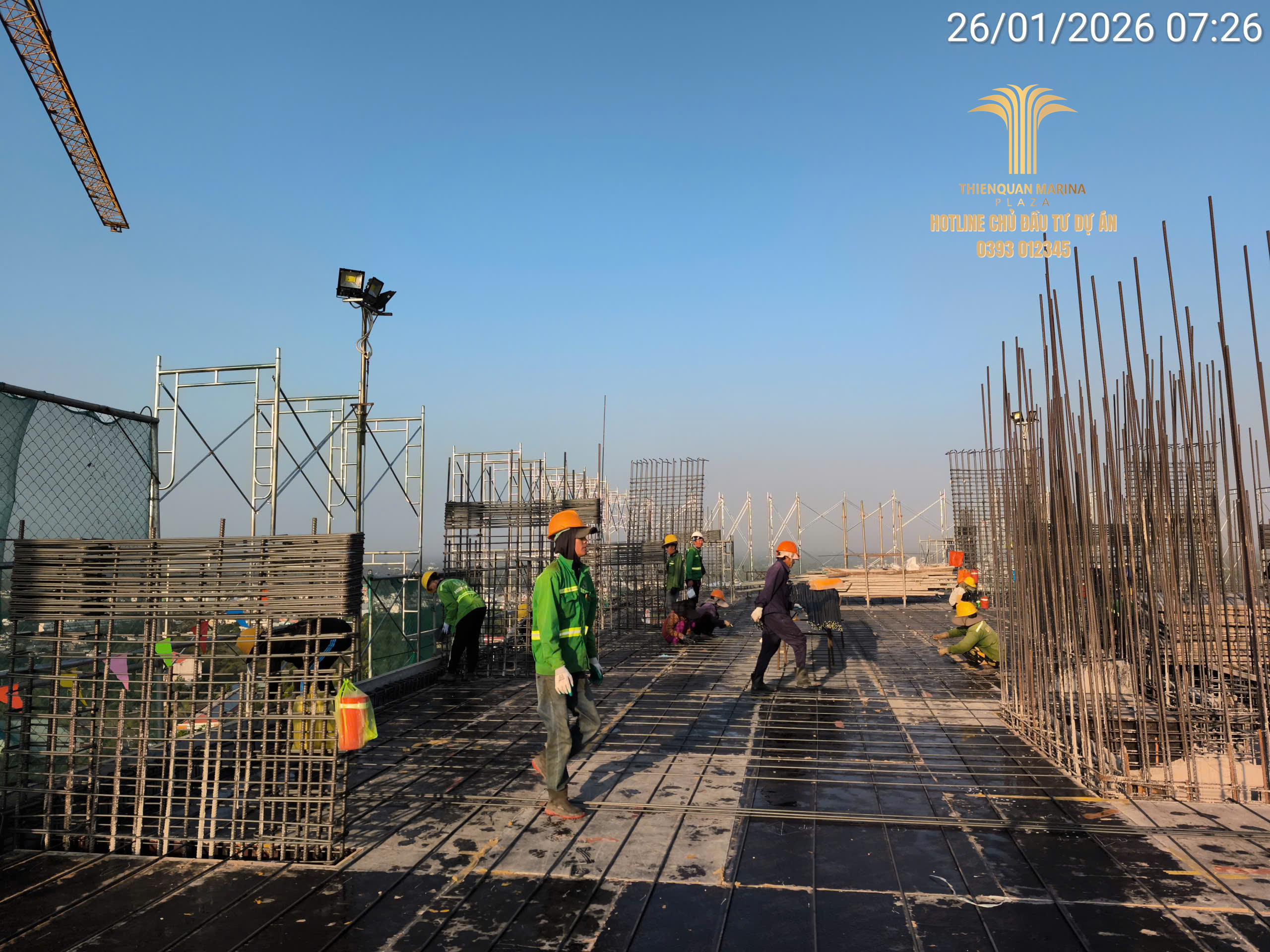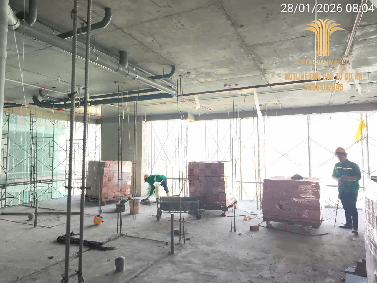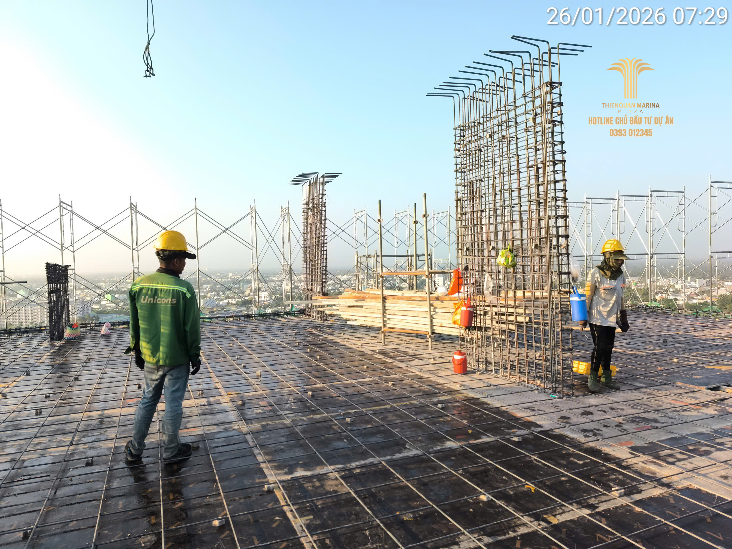 Trong những ngày giáp Tết, không khí tại công trường Thiên Quân Marina Plaza vẫn vô cùng hối hả. Với sự tập trung cao độ, dự án không chỉ duy trì nhịp độ ở các tầng cao mà còn mở rộng phạm vi lắp đặt hệ thống kỹ thuật xuống các tầng dưới, khẳng định cam kết về tiến độ với khách hàng.
