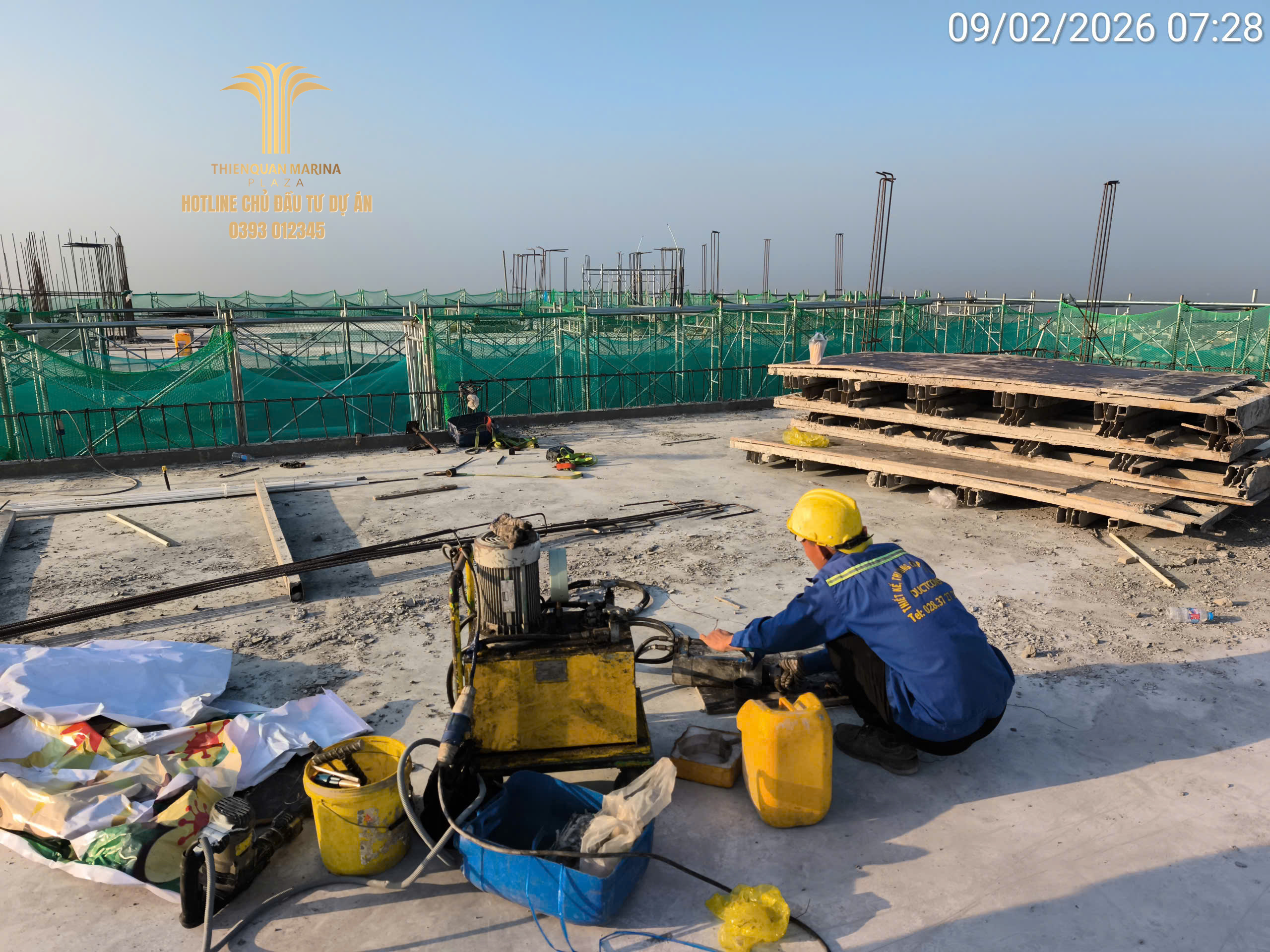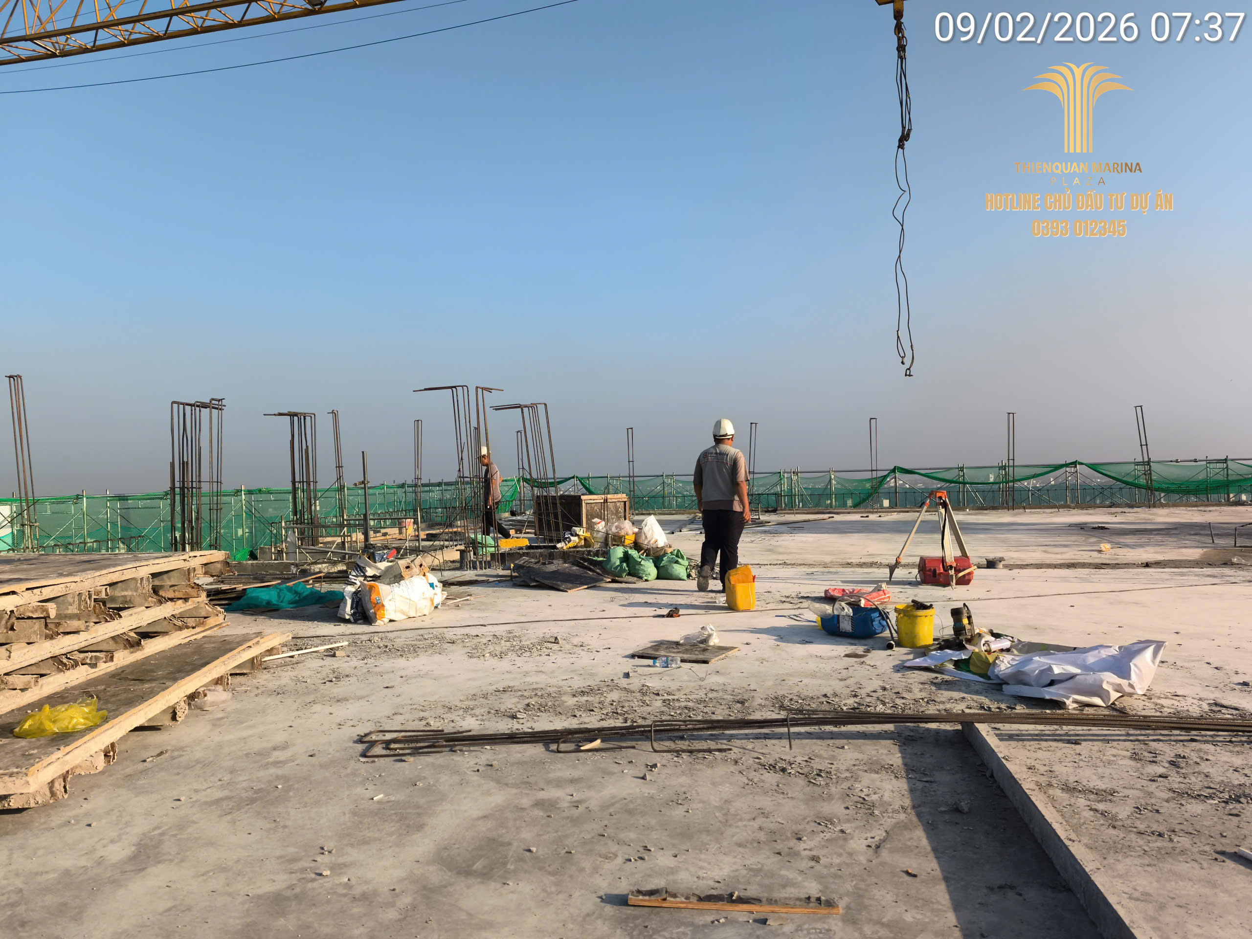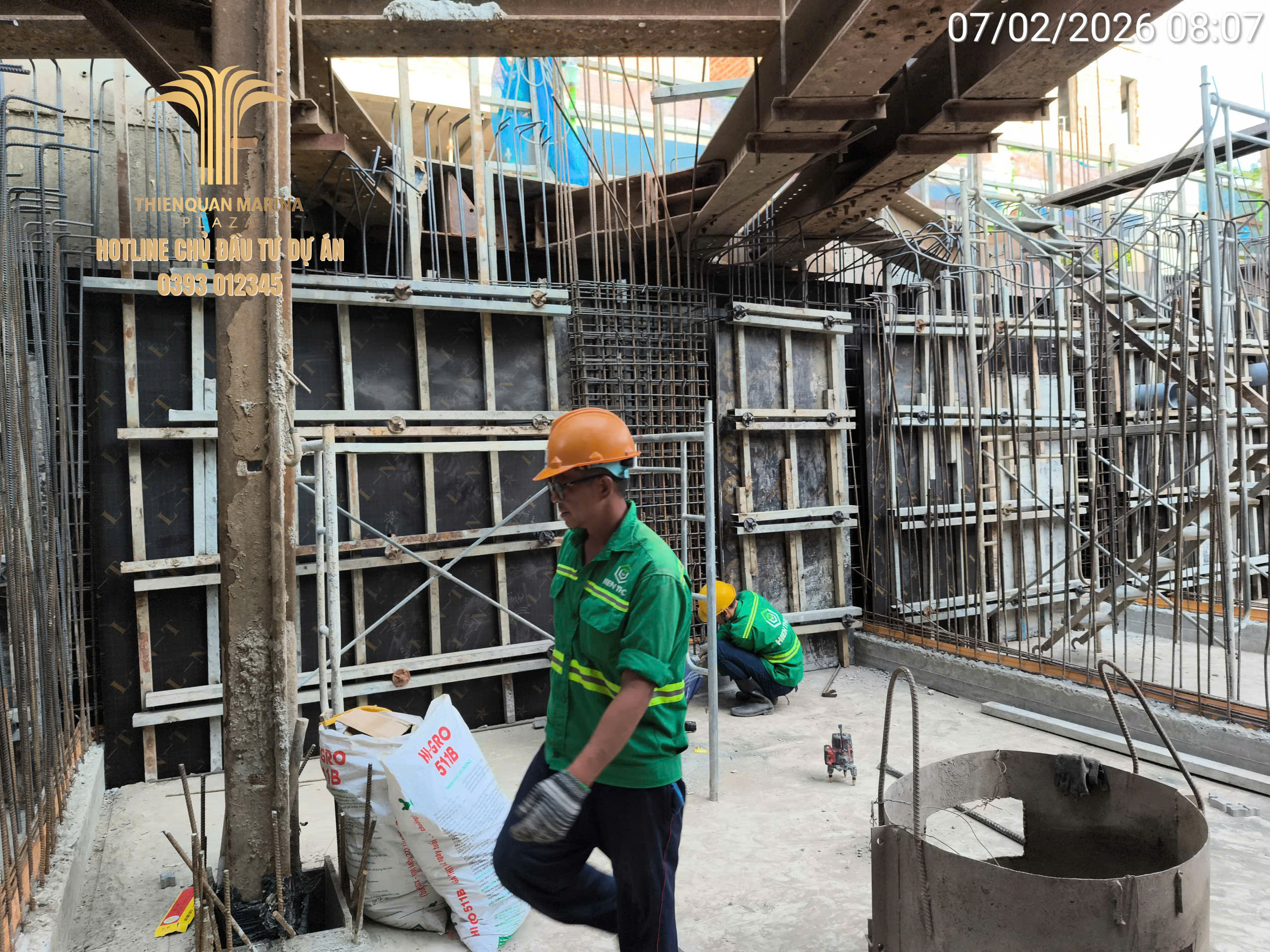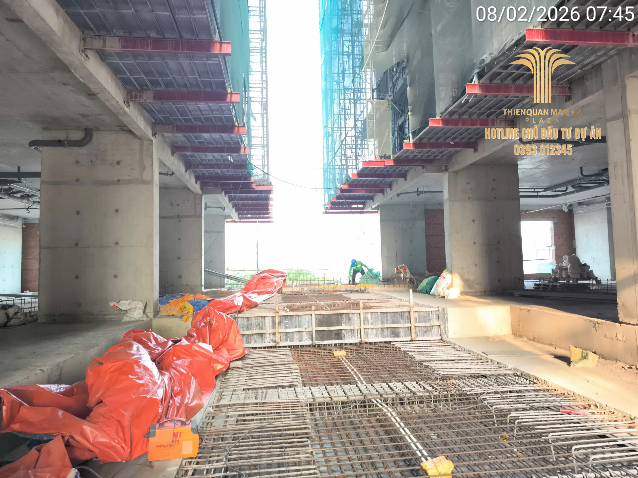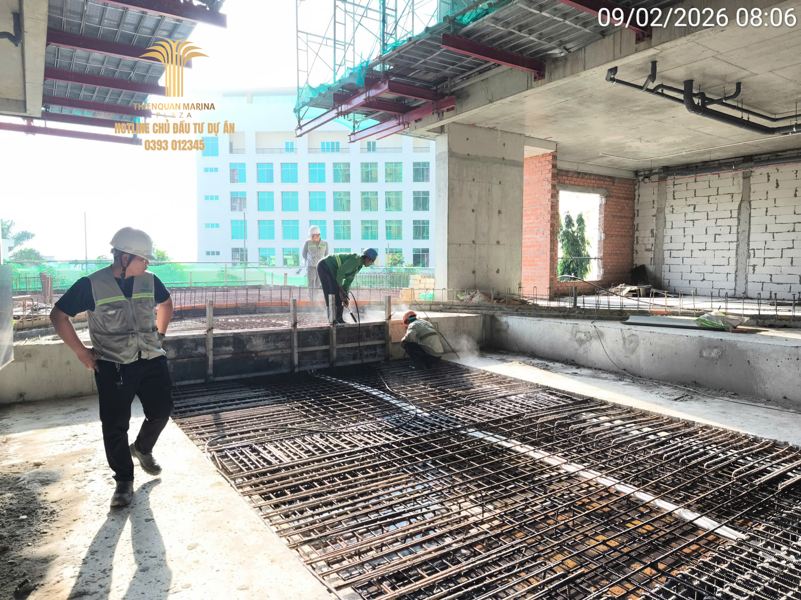 Sau cột mốc đổ bê tông dầm sàn quan trọng, không khí thi công tại Thiên Quân Marina Plaza trong ngày 04.02 vẫn duy trì được sự khẩn trương và chuyên nghiệp trên mọi mặt trận. Ban chỉ huy đang bám sát tiến độ để đảm bảo các hạng mục kết cấu và hoàn thiện diễn ra đúng lộ trình đề ra.