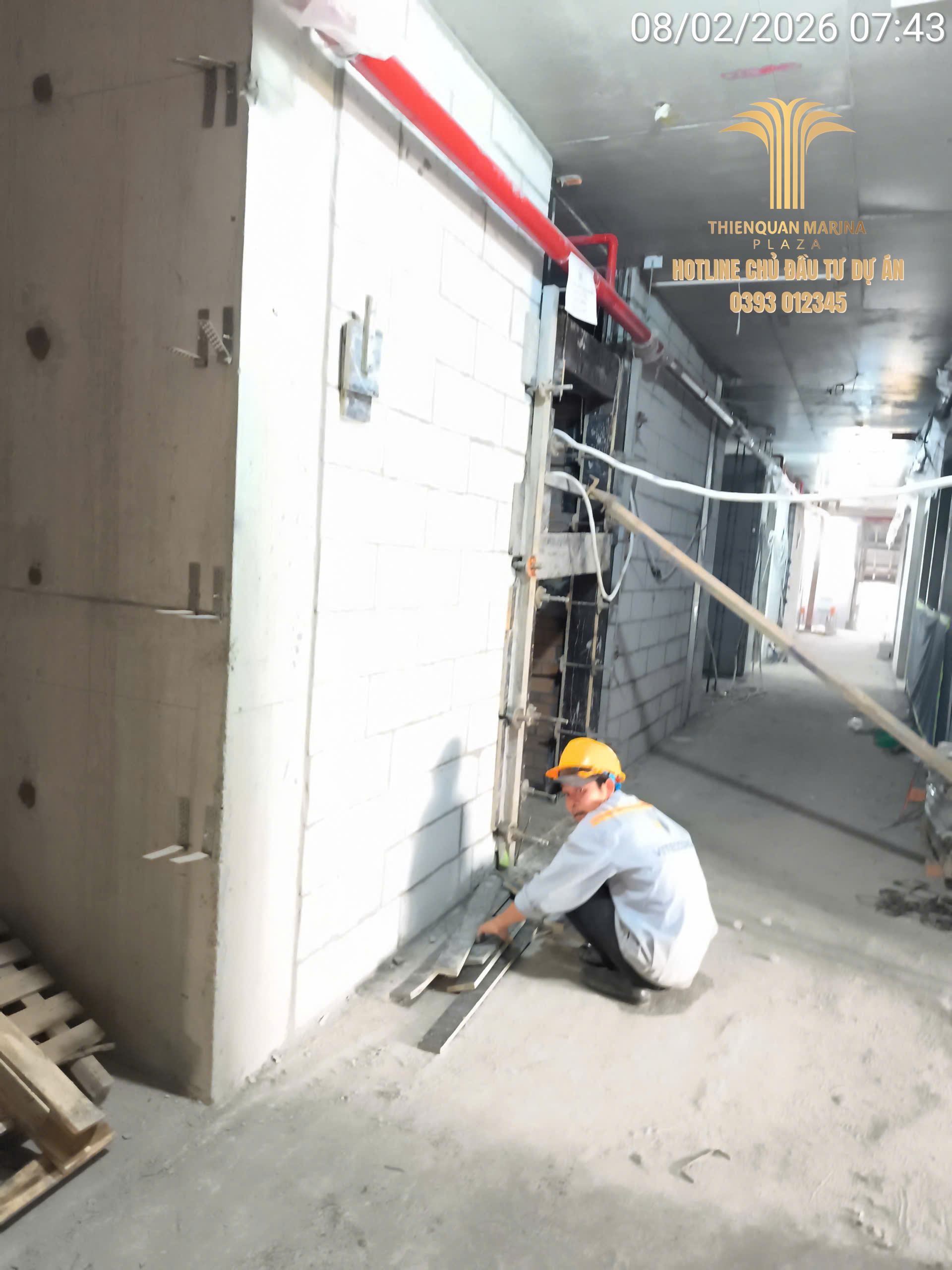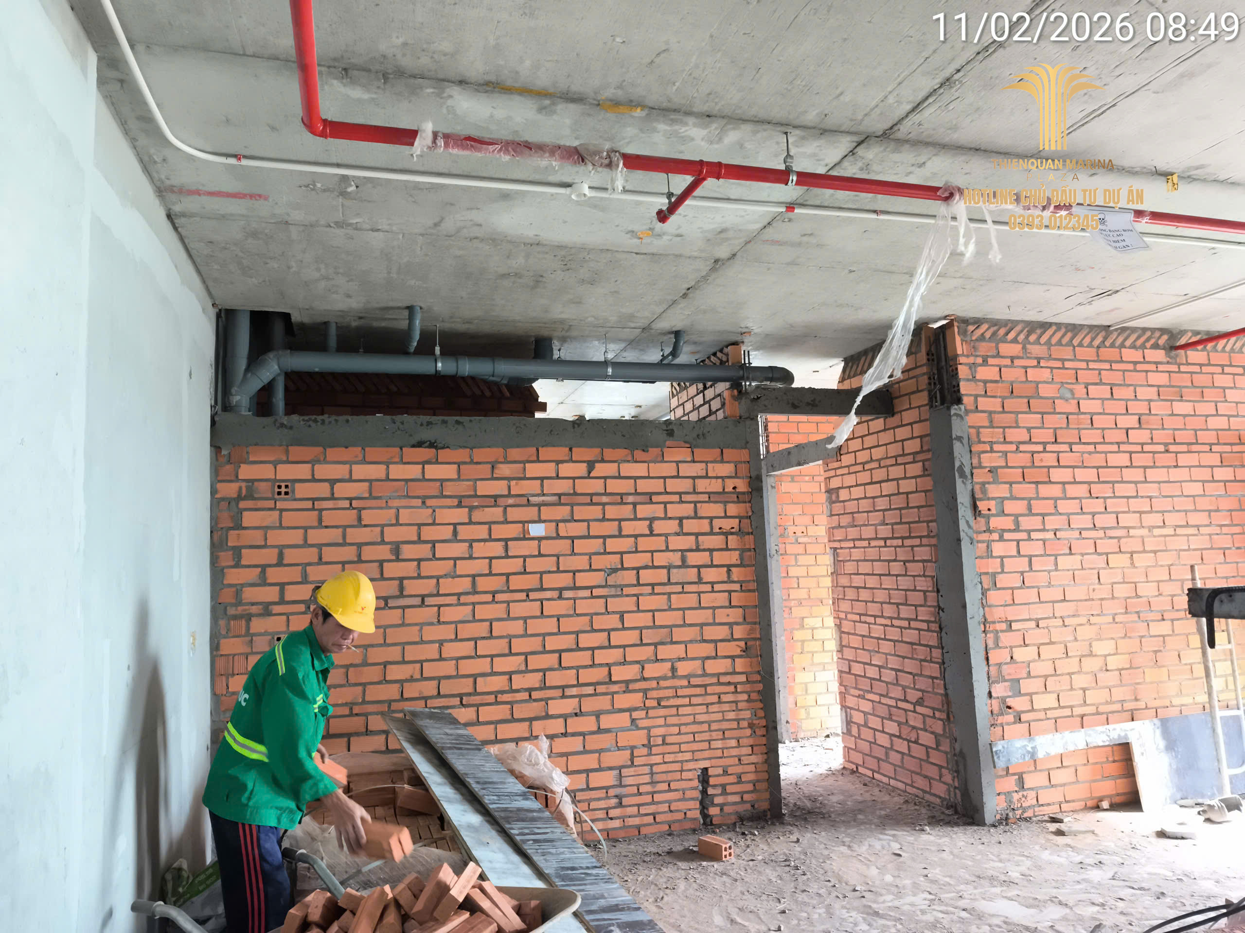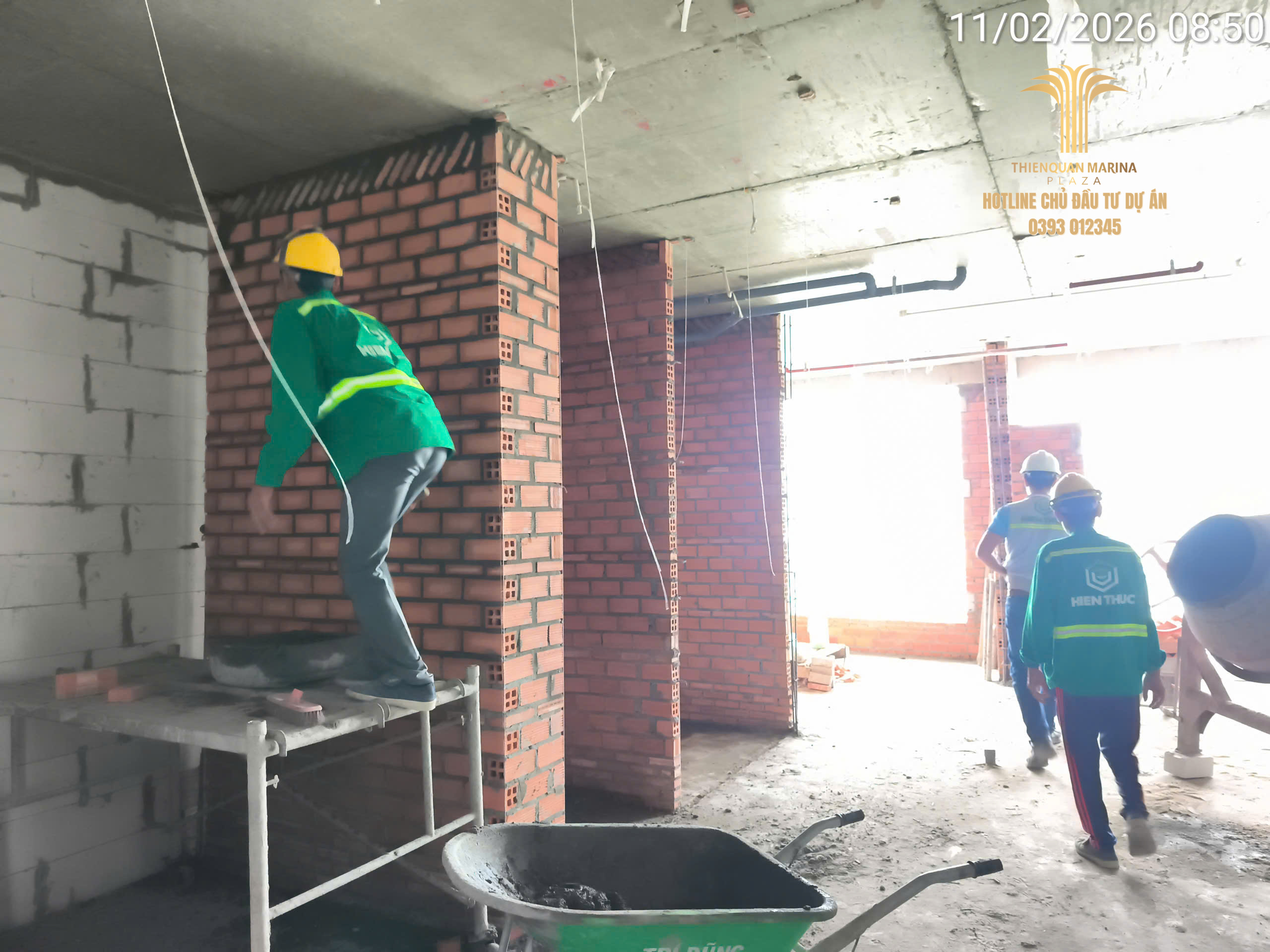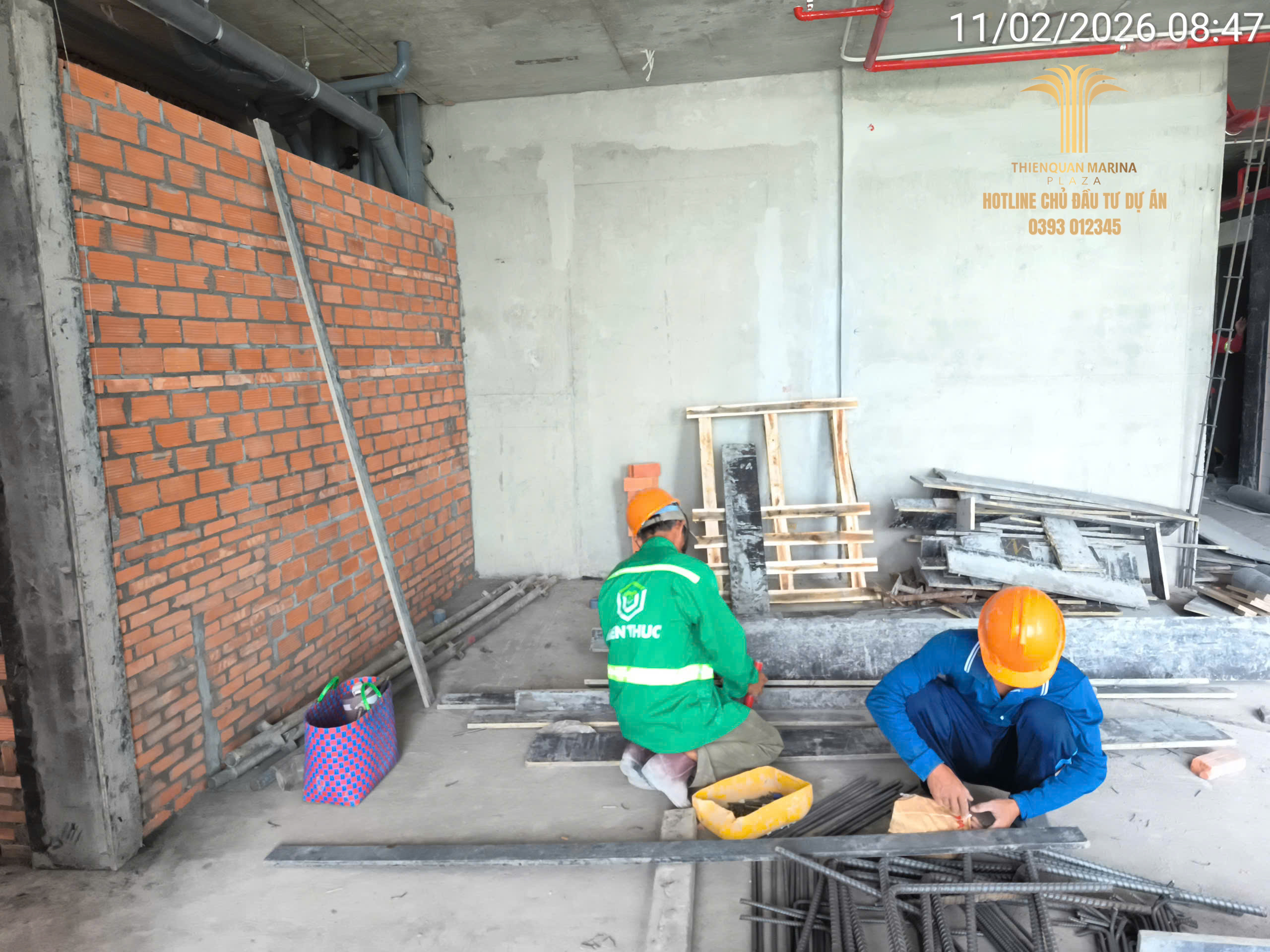Tiếp nối đà thi công khẩn trương, công trường Thiên Quân Marina Plaza ngày hôm nay ghi nhận sự phối hợp nhịp nhàng giữa các tổ đội xây thô và kỹ thuật điện nước, nhằm đảm bảo lộ trình bàn giao căn hộ đúng cam kết.