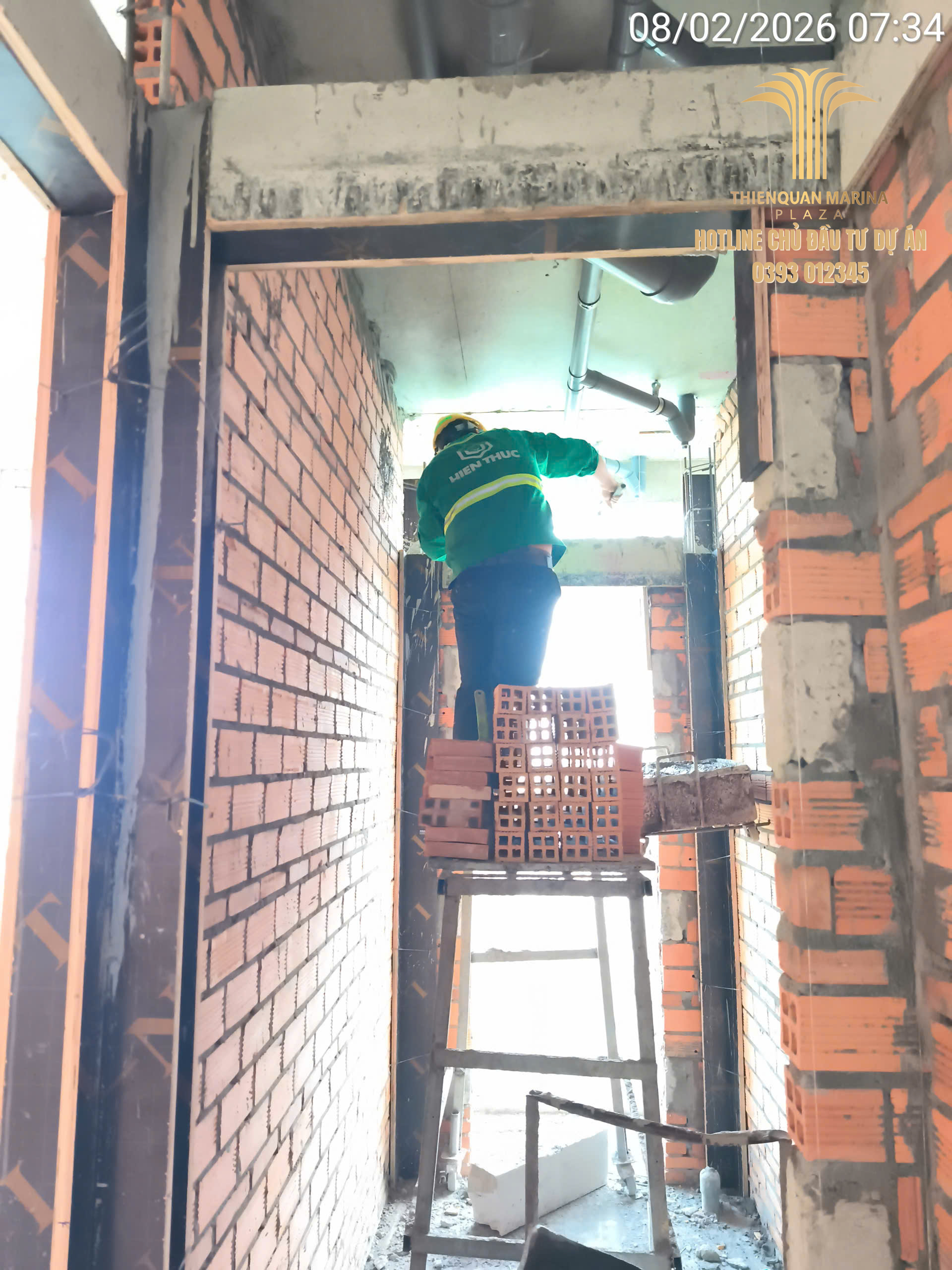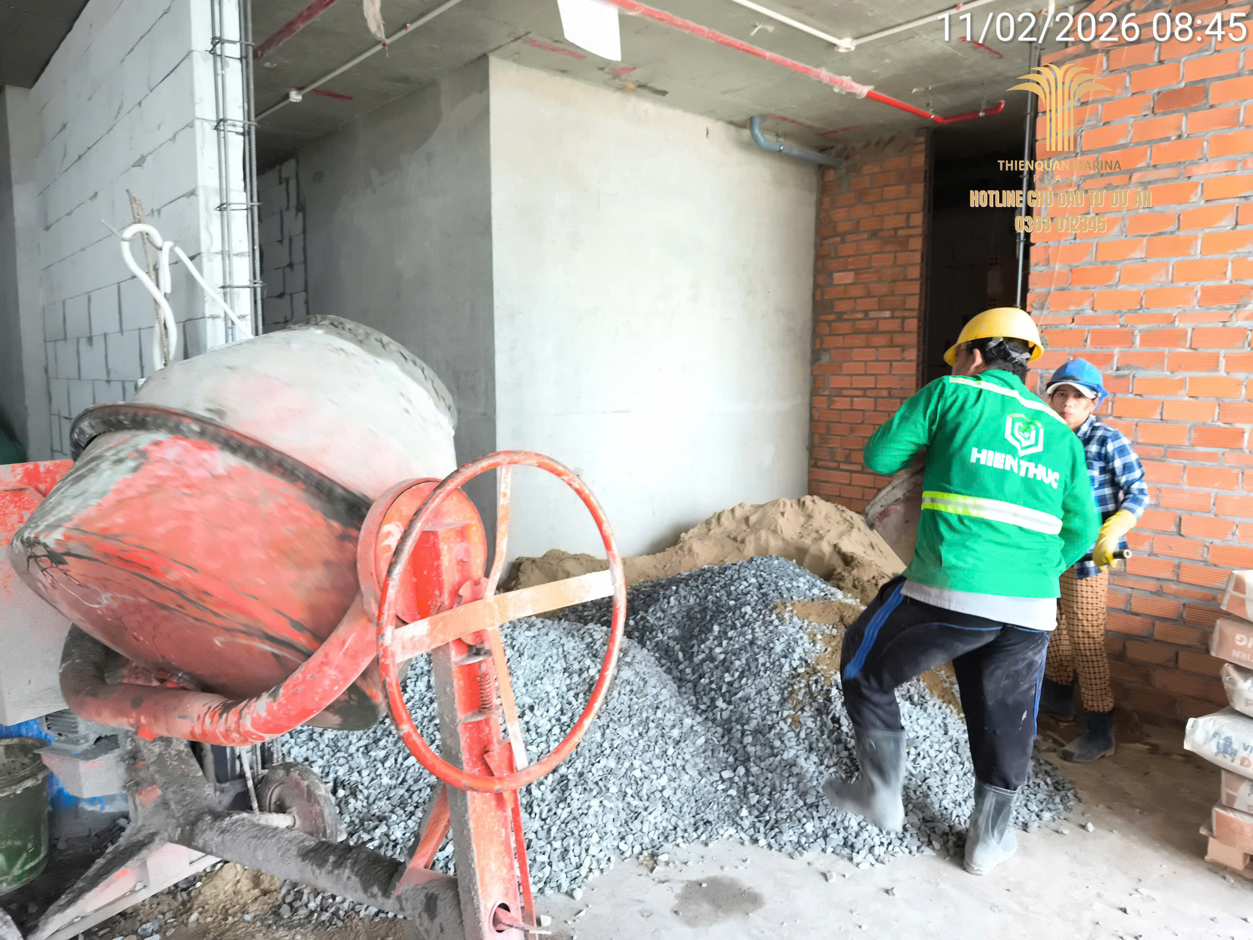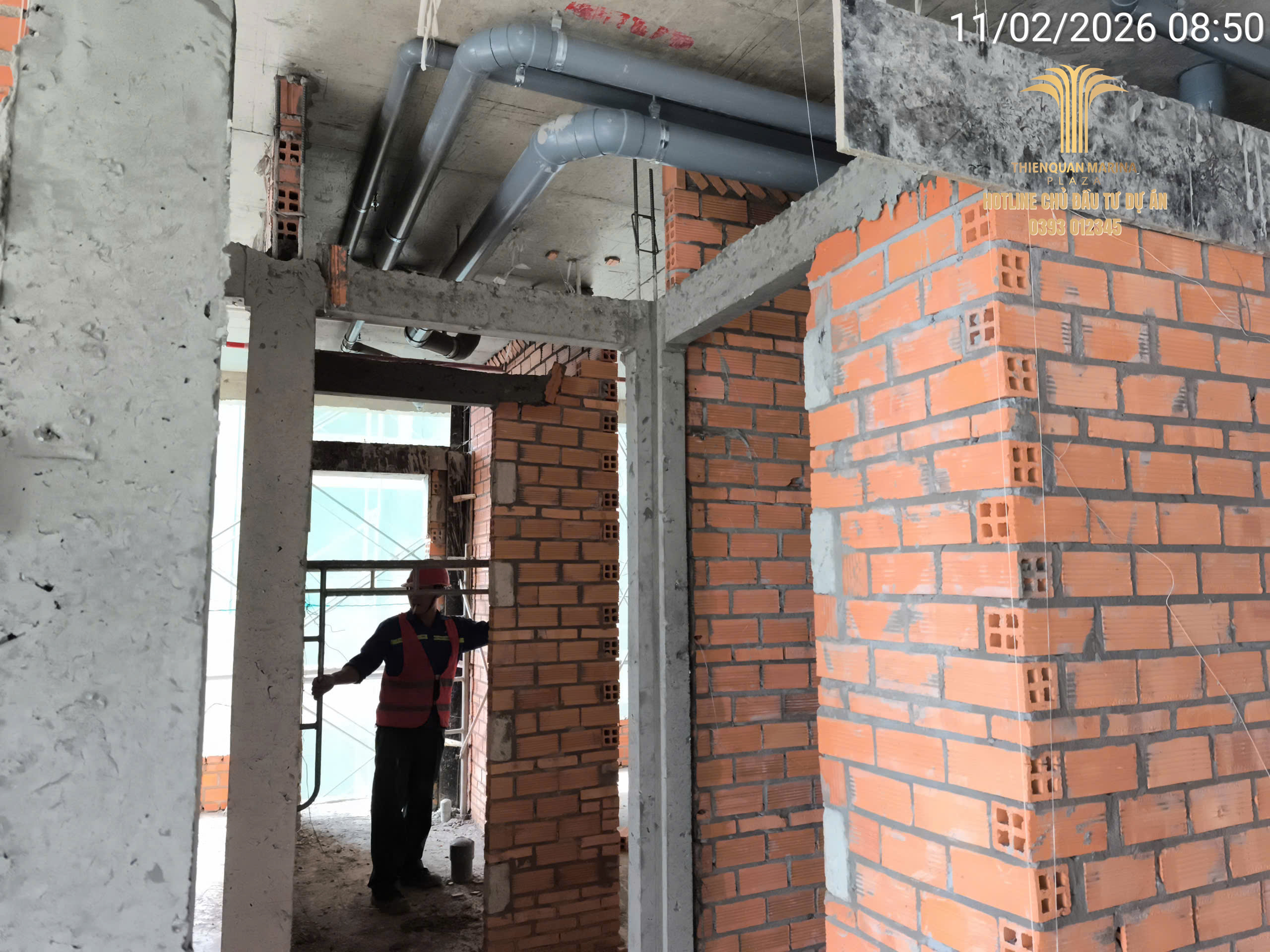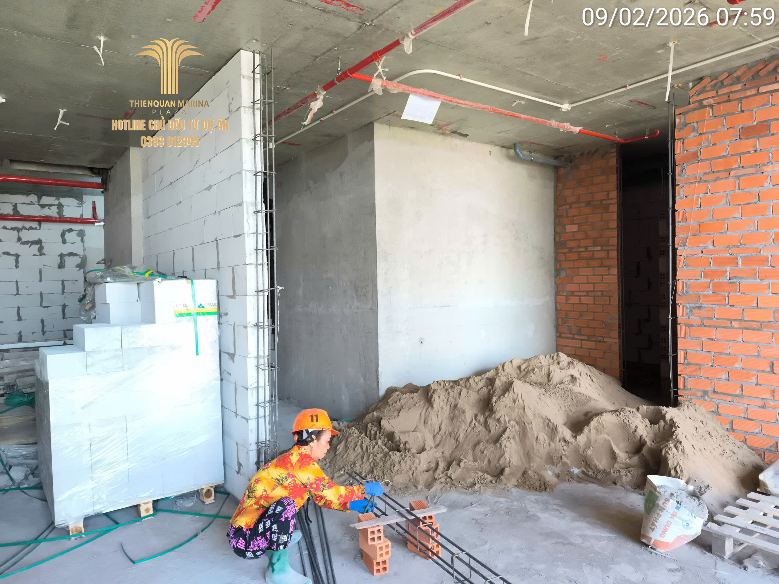 Tiếp nối đà thi công khẩn trương, công trường Thiên Quân Marina Plaza ngày hôm nay ghi nhận sự phối hợp nhịp nhàng giữa các tổ đội xây thô và kỹ thuật điện nước, nhằm đảm bảo lộ trình bàn giao căn hộ đúng cam kết.