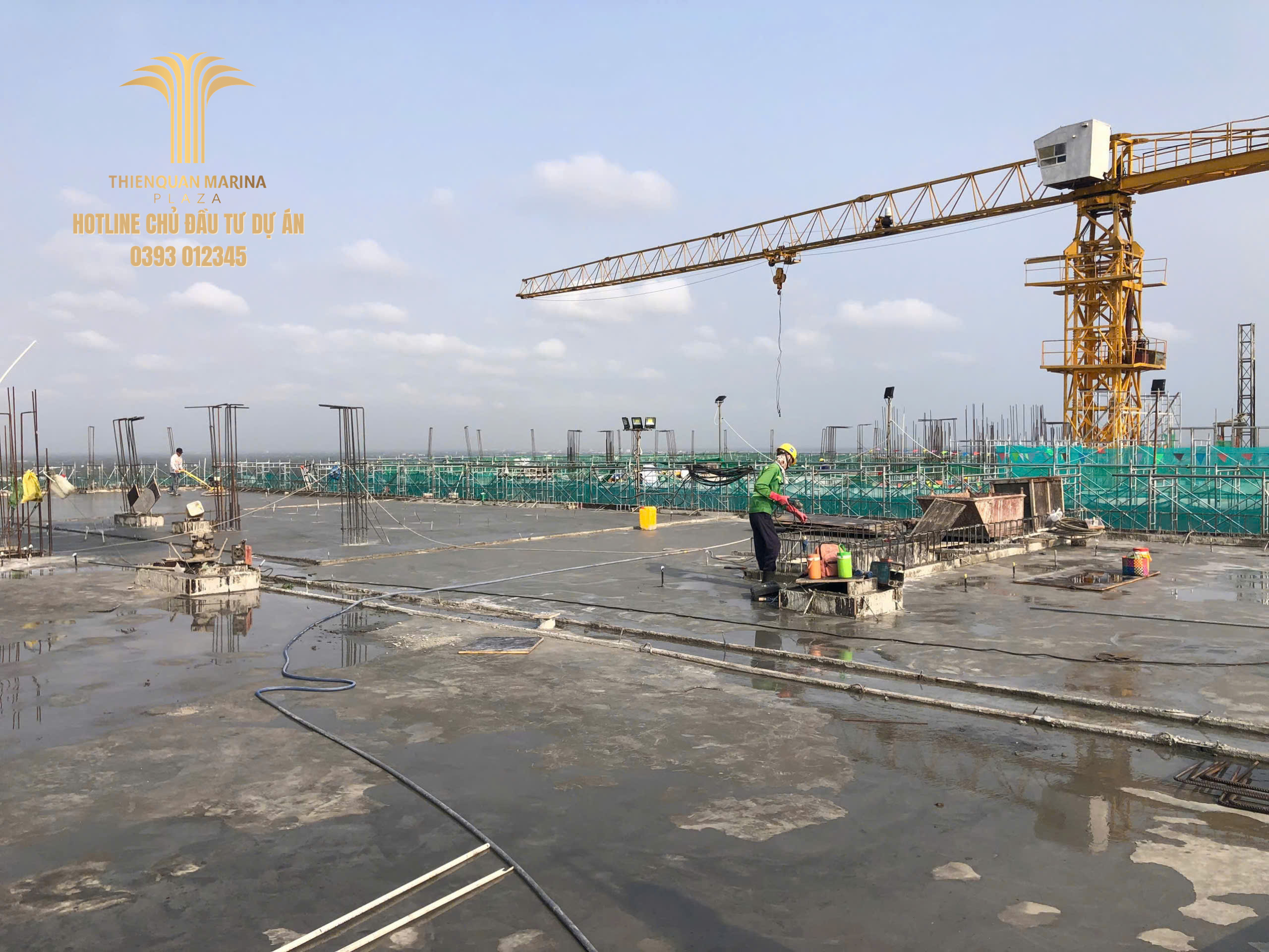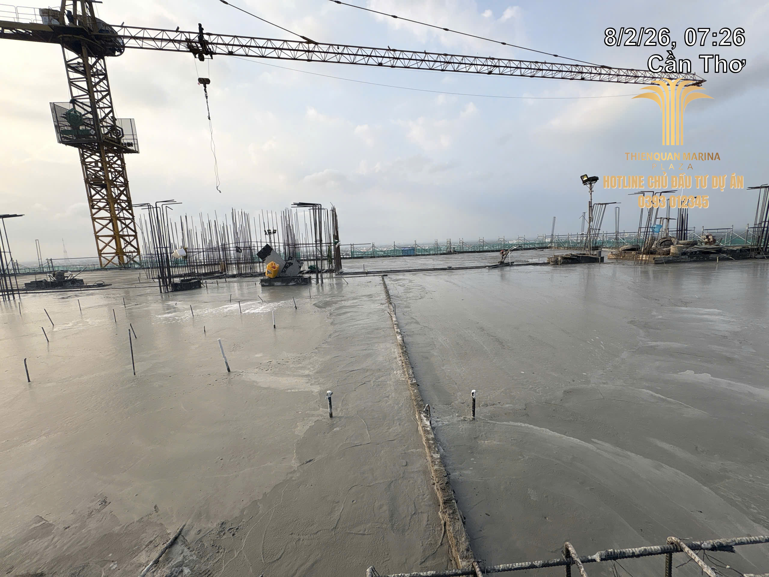 Dự án Thiên Quân Marina Plaza tiếp tục duy trì nhịp độ thi công thần tốc trong những ngày đầu tháng 2. Điểm nhấn quan trọng nhất trong ngày hôm nay chính là chiến dịch đổ bê tông sàn tầng 23, đưa dự án tiến gần hơn đến ngày cất nóc.