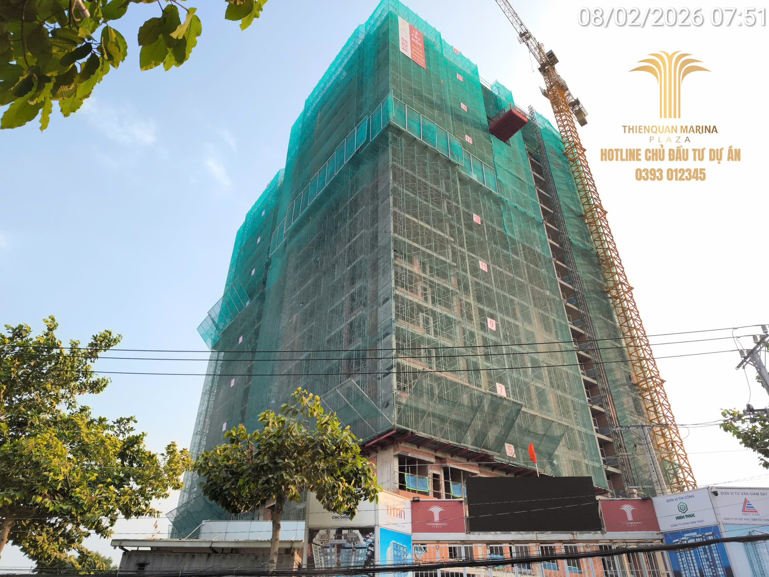 Ngày 05.02 chứng kiến sự tập trung cao độ của toàn đội ngũ Thiên Quân Marina Plaza. Dưới điều kiện thời tiết ủng hộ, các hạng mục từ kết cấu tầng cao đến hoàn thiện cơ điện đều được triển khai nhịp nhàng, đảm bảo tính thẩm mỹ và kỹ thuật khắt khe nhất.