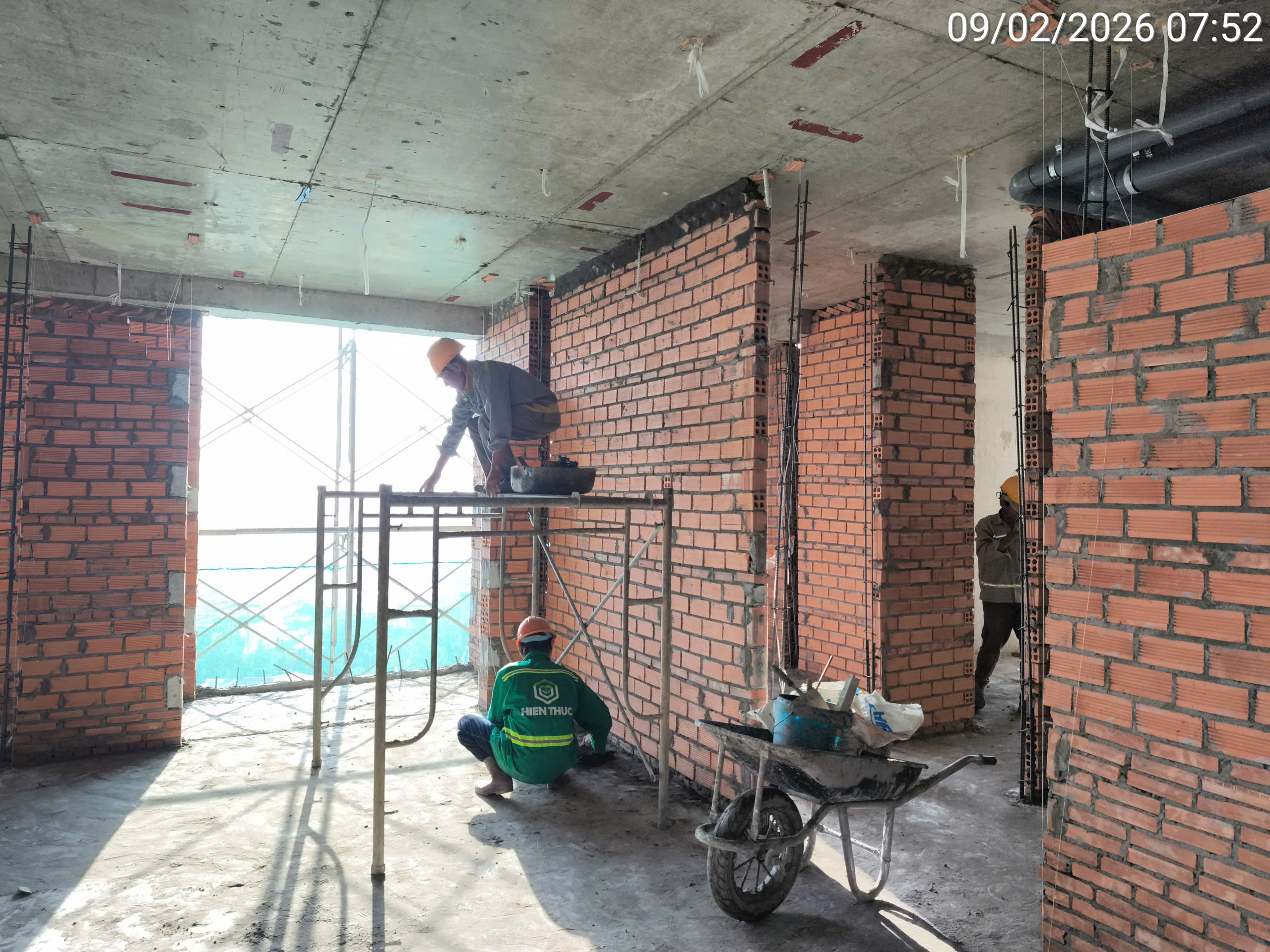 Duy trì xây thô: Tiếp tục công tác xây tường tầng 2-11 và lắp đặt điện nước đến tầng 15.