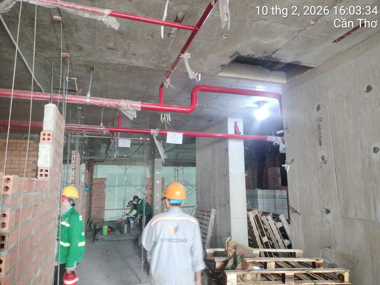 Hệ thống an toàn: Bắt đầu lắp đặt hệ thống phòng cháy chữa cháy (PCCC) từ tầng 2 đến tầng 9.