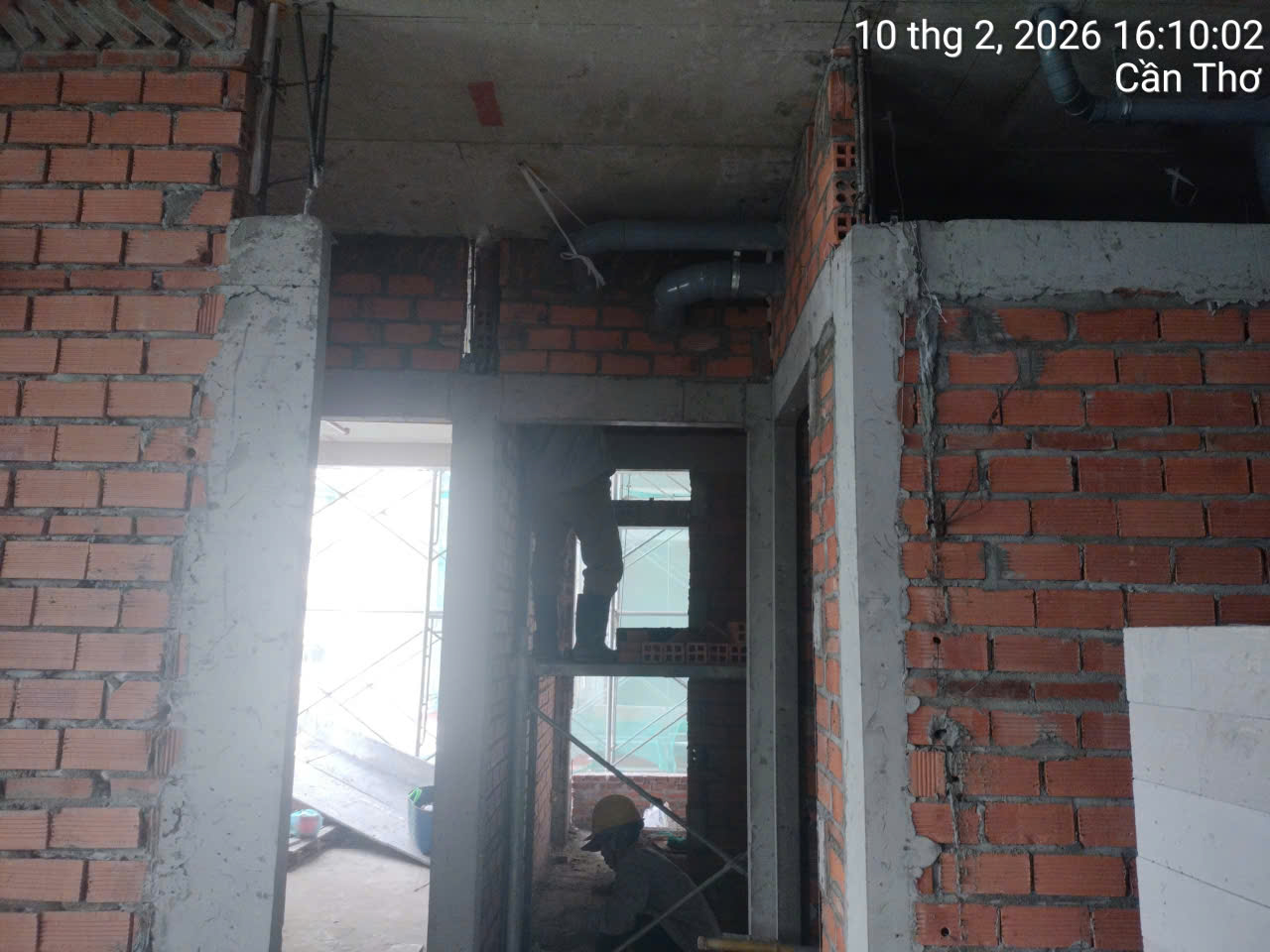 Duy trì công tác xây tường, lanh tô và bổ trụ tại khu vực từ tầng 2 đến tầng 10.