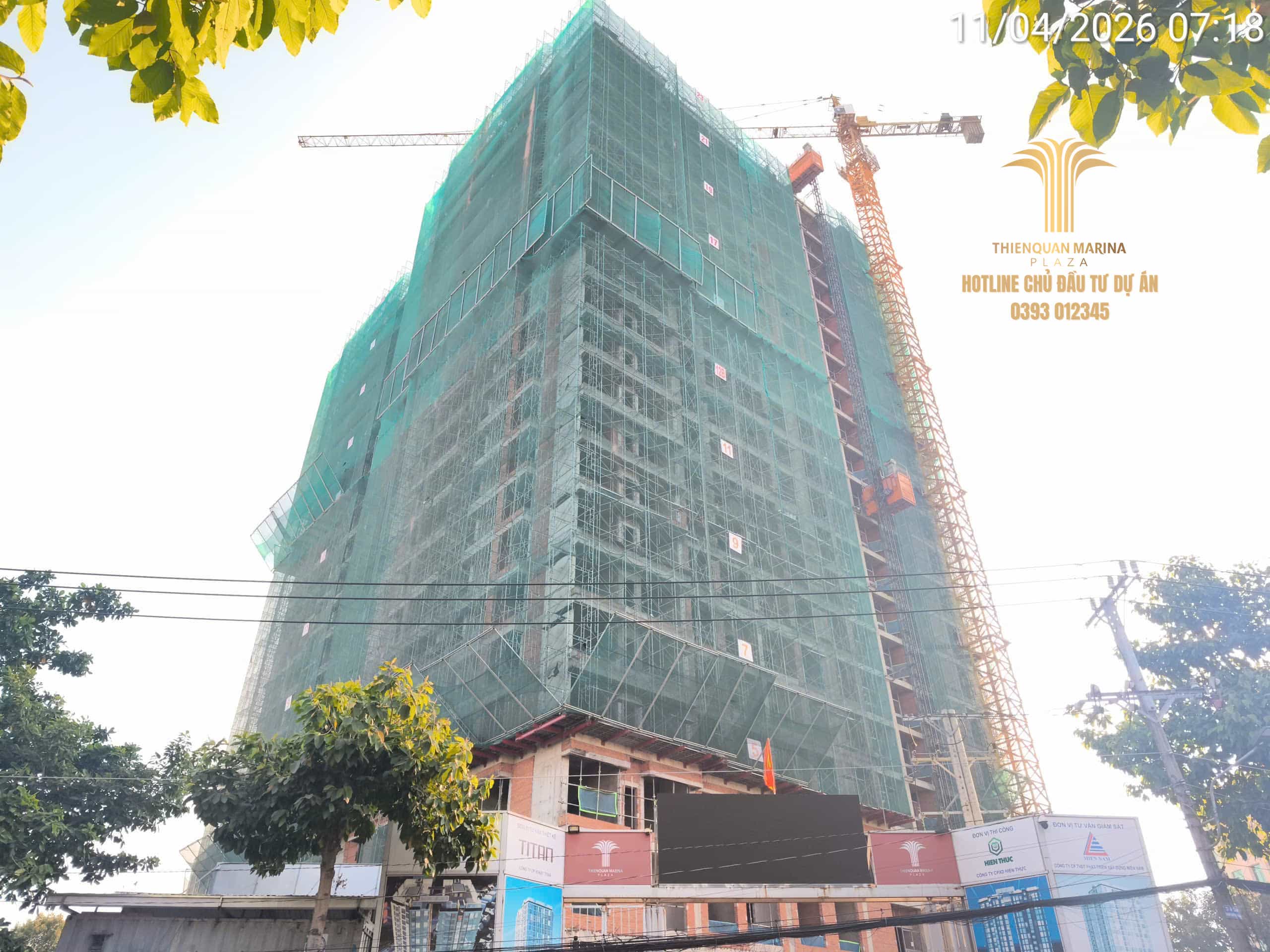 Ban Chỉ huy (BCH) công trường Thiên Quân Marina Plaza xin gửi đến Quý khách hàng thông tin cập nhật về tiến độ thi công dự án. Những ngày đầu tháng 04/2026, công trường tiếp tục duy trì khí thế làm việc khẩn trương, tập trung tối đa nguồn lực cho các hạng mục hoàn thiện và kết cấu tầng cao.