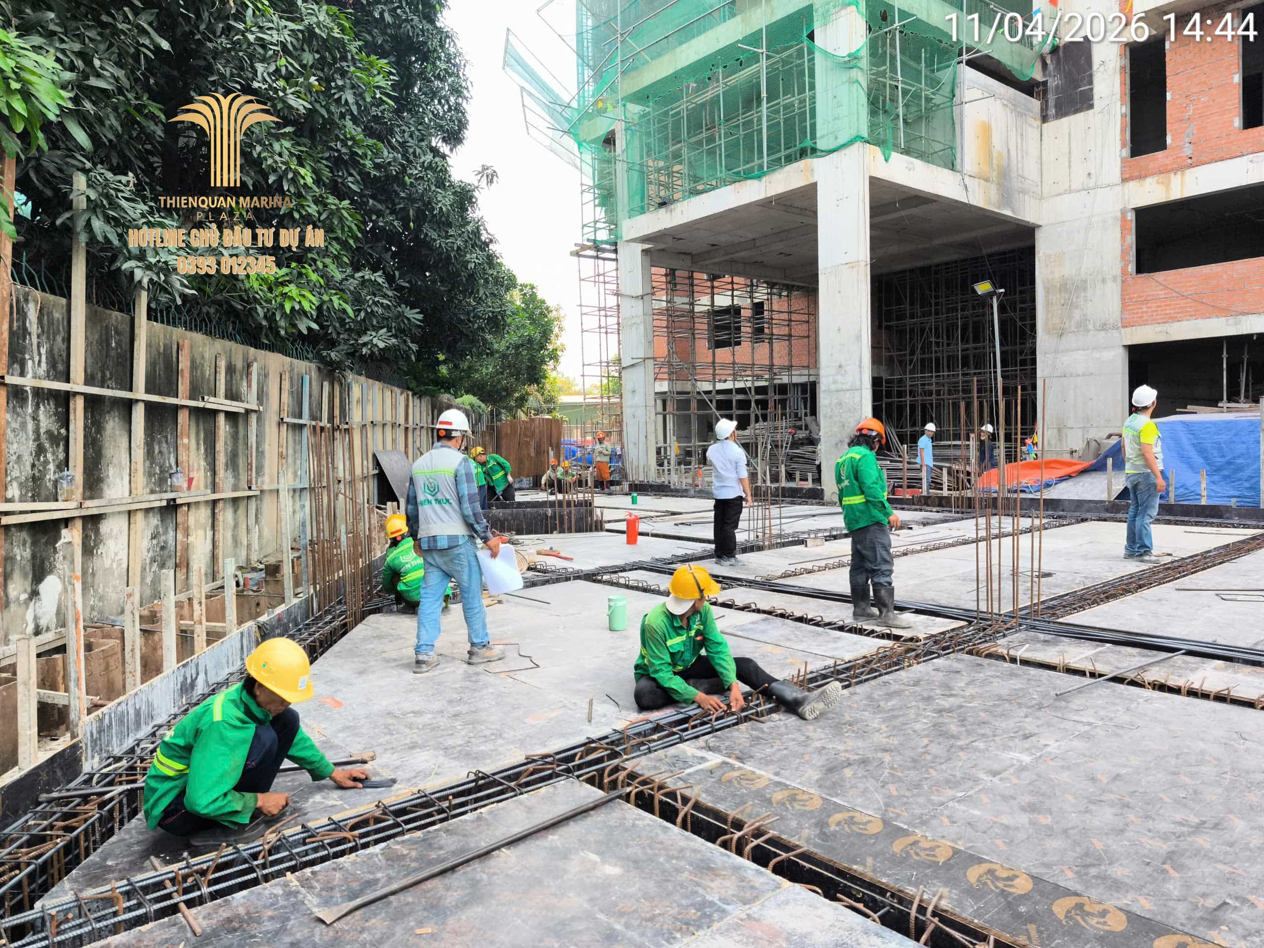 Ban Chỉ huy (BCH) công trường Thiên Quân Marina Plaza xin gửi đến Quý khách hàng và các nhà đầu tư bản tin tổng hợp tiến độ thi công giai đoạn  khởi đầu tháng 04/2026. Với tinh thần làm việc xuyên suốt, dự án đang ghi nhận những cột mốc quan trọng trong công tác hoàn thiện và kết cấu.
