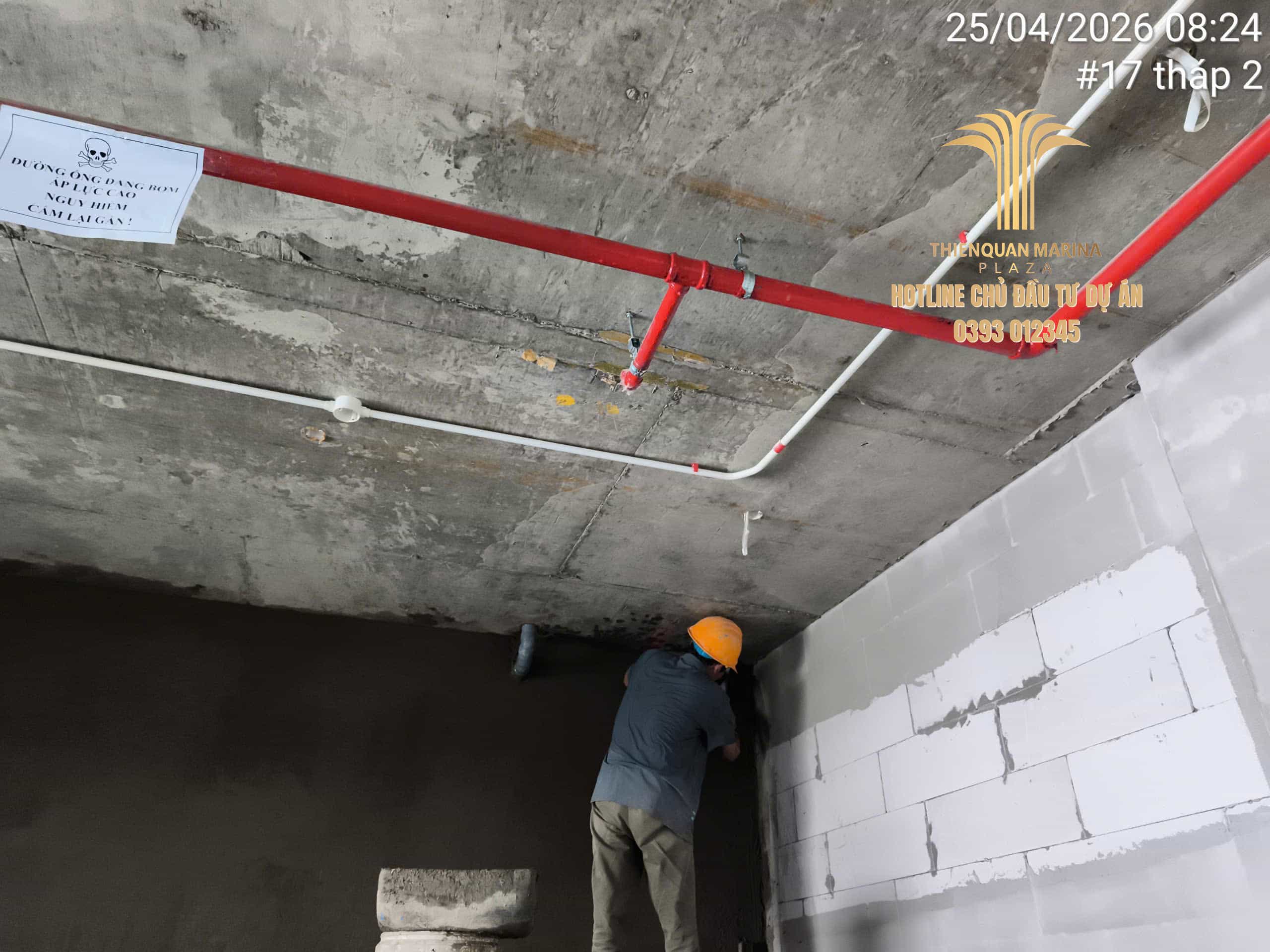 Hạng mục PCCC & Hoàn thiện: Tập trung lắp đặt hệ thống PCCC tầng 14 – 17 và đẩy mạnh trát vữa mặt ngoài tầng 5-14 tại riêng Tháp 2.