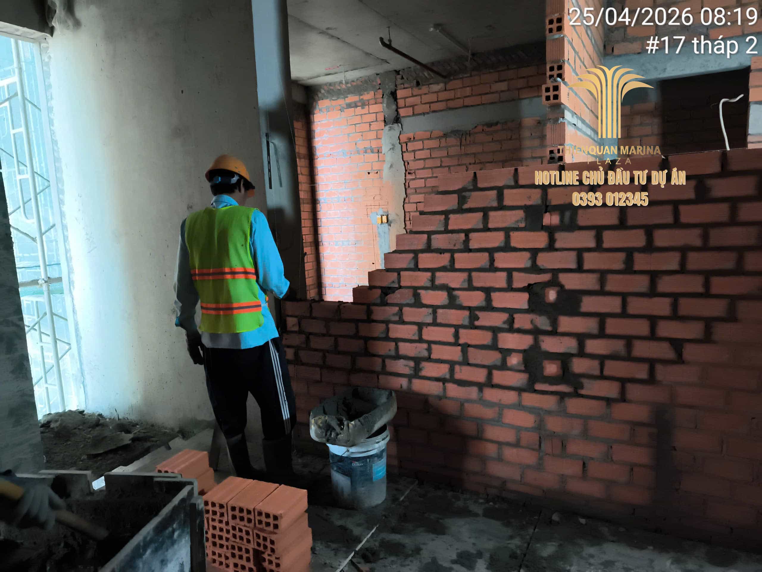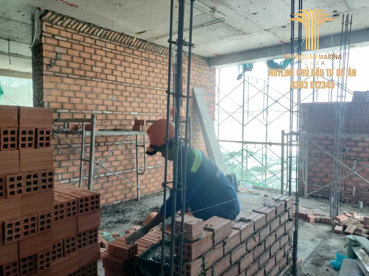 Hạng mục xây tường, lanh tô và bổ trụ bứt tốc mạnh mẽ, hiện đang được thực hiện tại khối tầng từ 15 đến tầng 21.