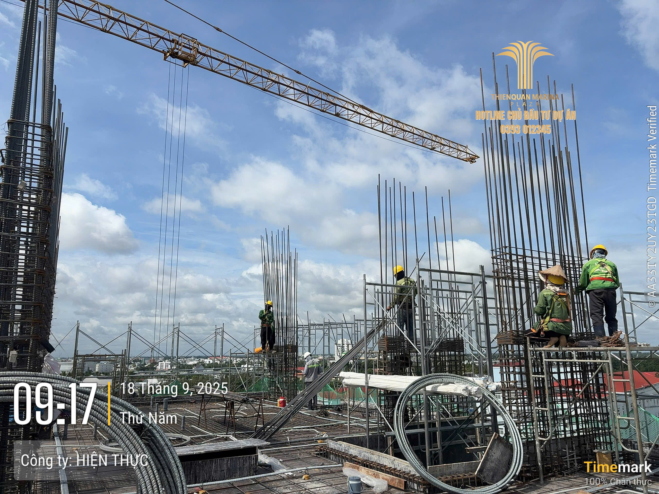 Dự án Chung cư Thiên Quân Marina Plaza Cần Thơ tiếp tục ghi nhận tiến độ thi công tích cực, tập trung vào việc hoàn thiện các hạng mục tại tầng 9. Báo cáo ngày 20 tháng 9 năm 2025 cho thấy công tác xây dựng đang được thực hiện một cách hiệu quả để đảm bảo tiến độ chung của dự án.